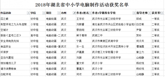 近日,湖北省教育信息化发展中心(湖北省电教馆)传来好消息,2018年第19届全国中小学电脑制作活动湖北选拔赛成绩揭晓:武汉市光谷第三初级中学(武珞路中学光谷分校)共有4名学生获得“数字创作评比类”省级大奖,分别是初中组王宇欣获得电脑绘画小组一等奖,蔡自翔获得电脑动画组二等奖,刘颖获得电脑动画组三等奖,何欢获得电脑动画组三等奖。