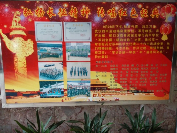 二、面向全体,创新载体。坚持以人为本,面向全体学生,围绕“培养学生良好行为习惯和道德品质”,设计学生喜闻乐见的活动载体,力求主题鲜明,形式生动。充分发挥学校的主课堂、主阵地、主渠道作用,将纪念红军长征胜利80周年主题教育活动暨2016年“弘扬和培育民族精神月”活动与学校的教育教学相结合,与硚口区“军训会操*唱响红歌”比赛活动相结合。