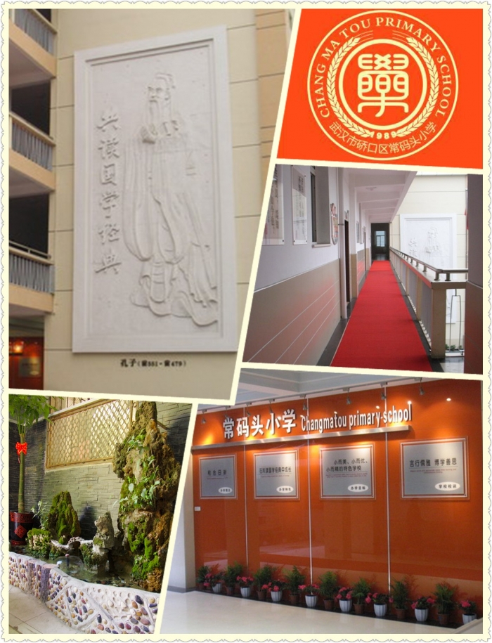 武汉市硚口区常码头小学位于硚口区常码头发展二村55号,建于1989年,虽占地不到6亩,学校却建有武汉市中小学最大的校内书馆和单面浮雕孔子行教圣像。学校先后被授予“硚口区素质教育特色学校”“武汉市经典诵读先进学校”、“中央教科所传统文化进校园实验基地”、“武汉市育灵童小学国学教育实验基地”。
