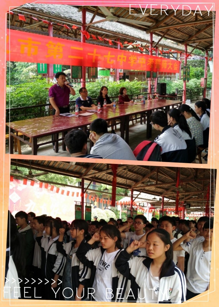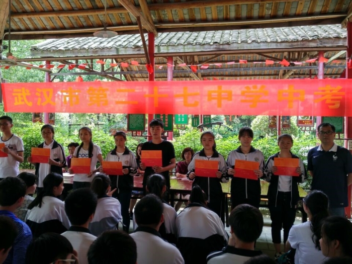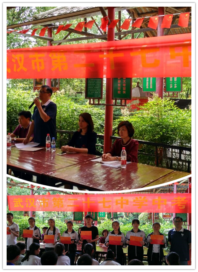 2016年5月13日,旭日和风,阳光灿烂。武汉市第二十七中学全体初三年级师生及校领导来到武汉市蔡甸区九真山户外拓展基地,进行初三年级户外拓展暨中考誓师大会,为决战中考呐喊加油。