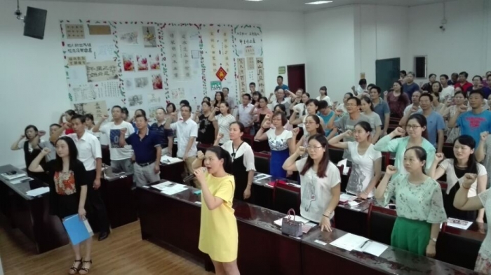 不忘初心,不忘师德,在大会的即将结束时刻,全体老师在领誓人李梦婵老师的带领下宣誓,一起回顾曾经许诺的铮铮誓言。