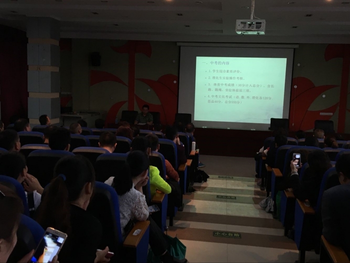 初三年级的家长会由学校赵校长主讲。他首先和家长们一起分享了“毕淑敏关于教育的四个建议”。随后,他细致的讲解了中考的具体内容,以及家长如何在初三一年的时间里辅导孩子学习,给予他们生活上的支持和心理上的鼓励,帮助他们明确目标并为之努力。