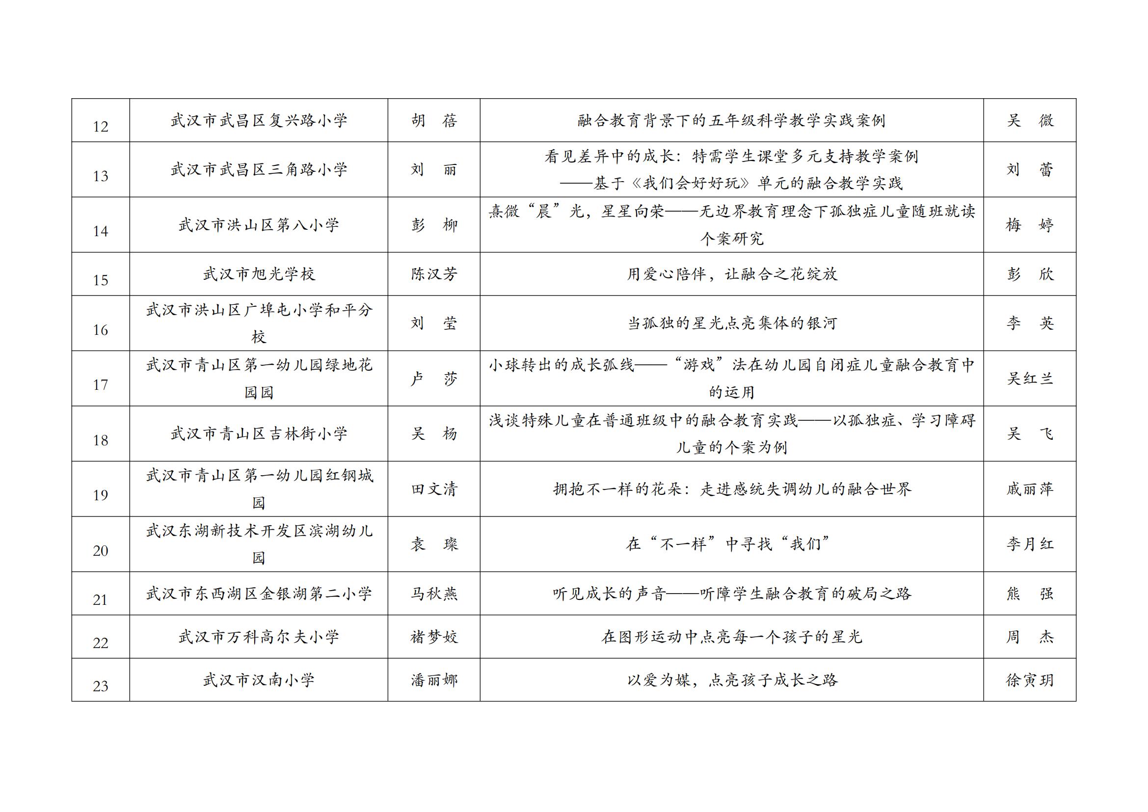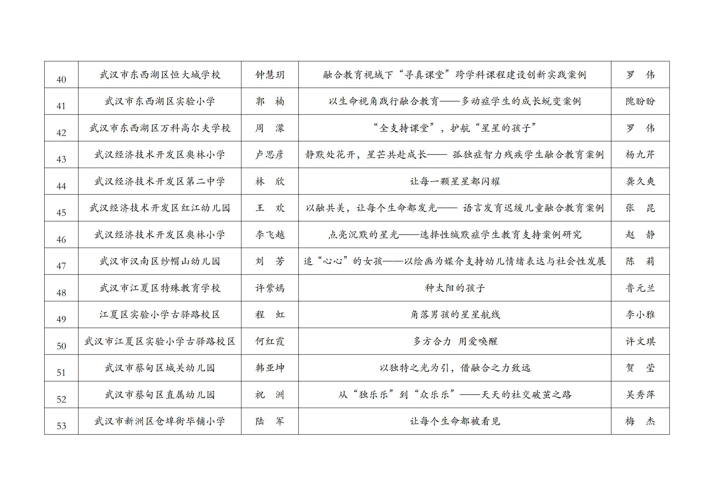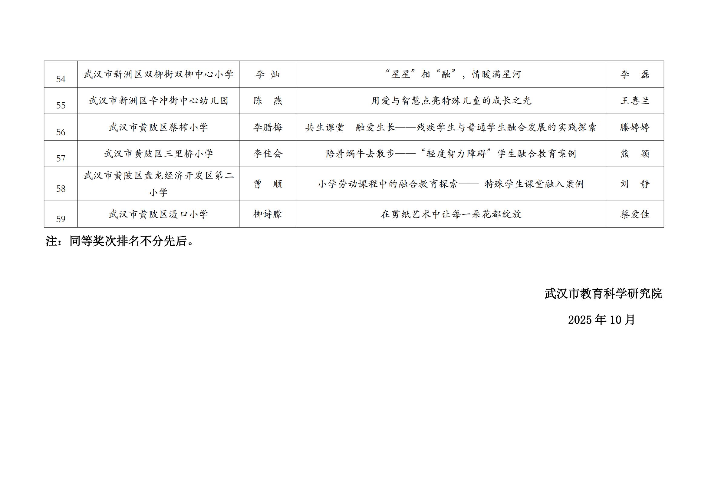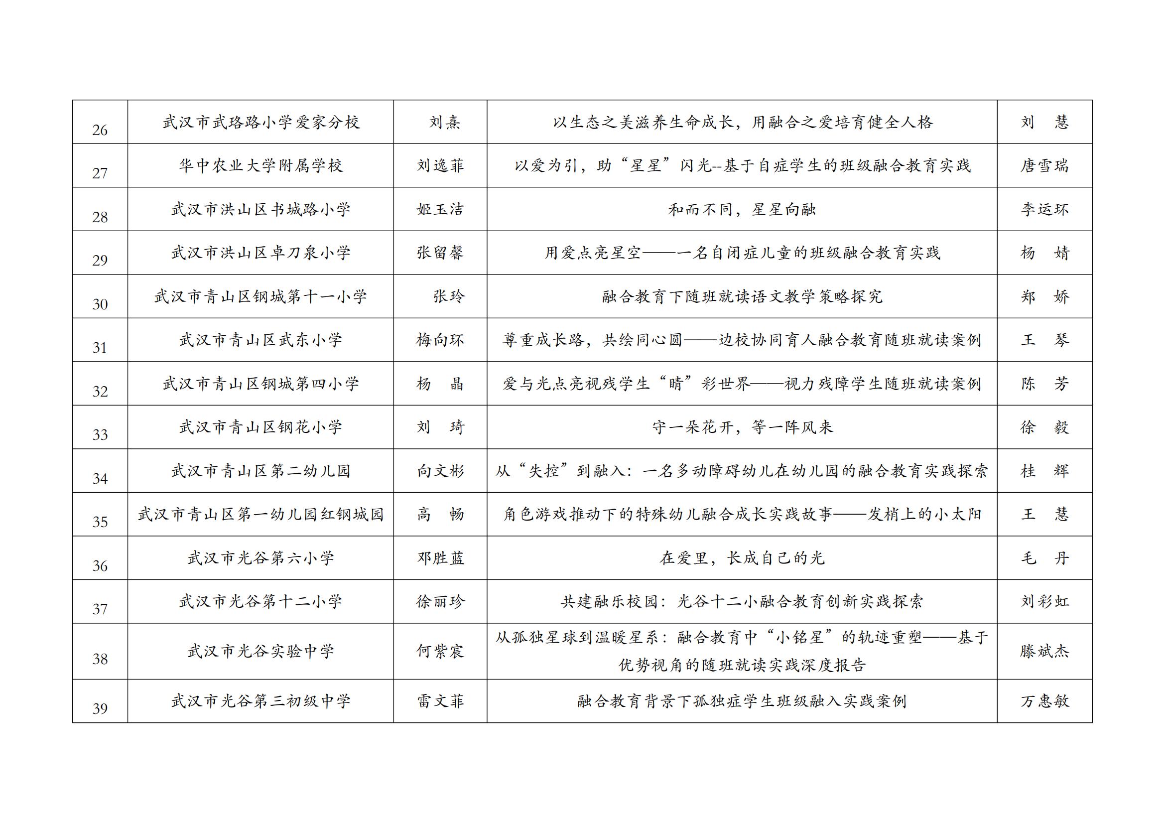 关于2025年武汉市普通学校(幼儿园)融合教育案例评比获奖结果公示