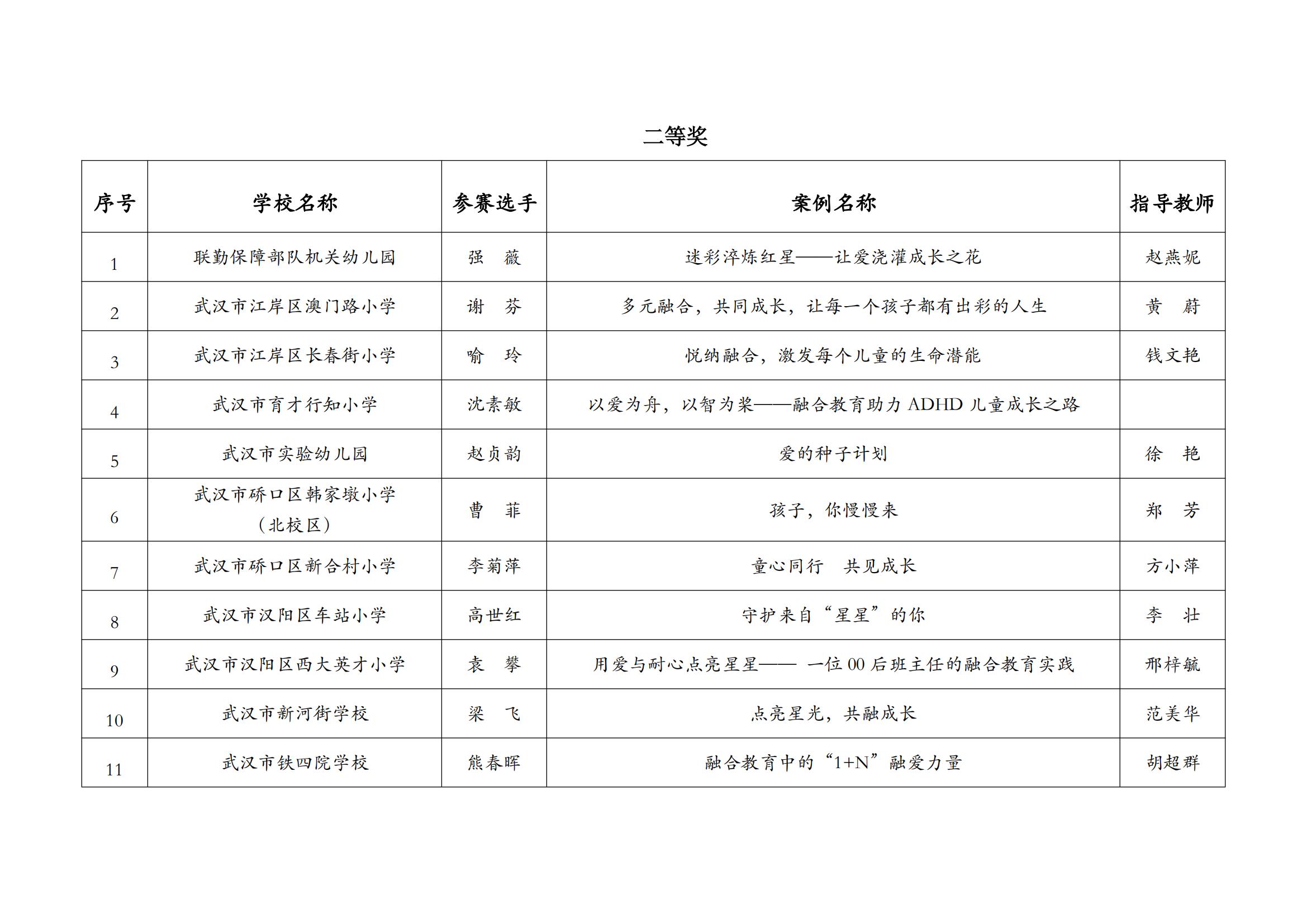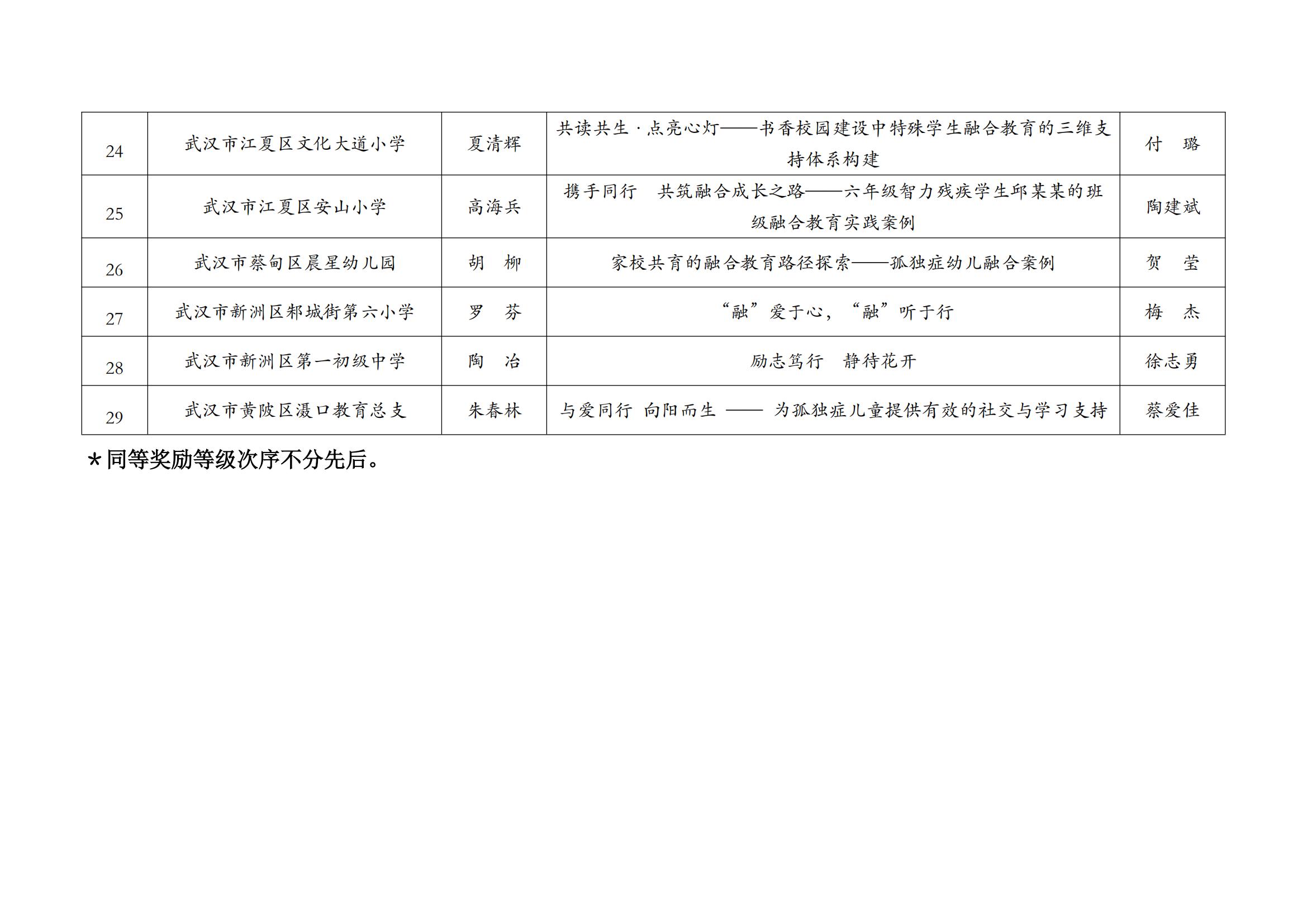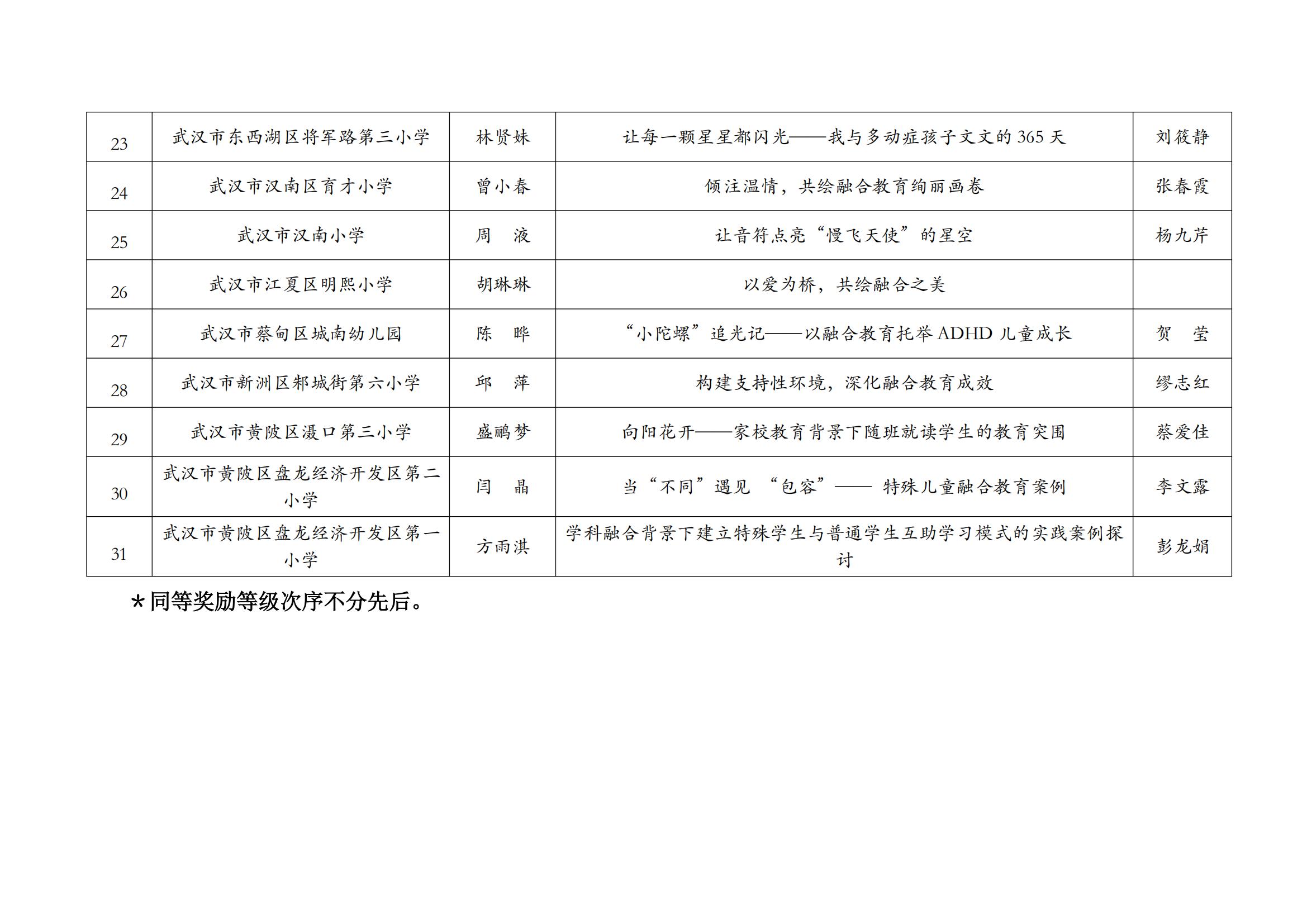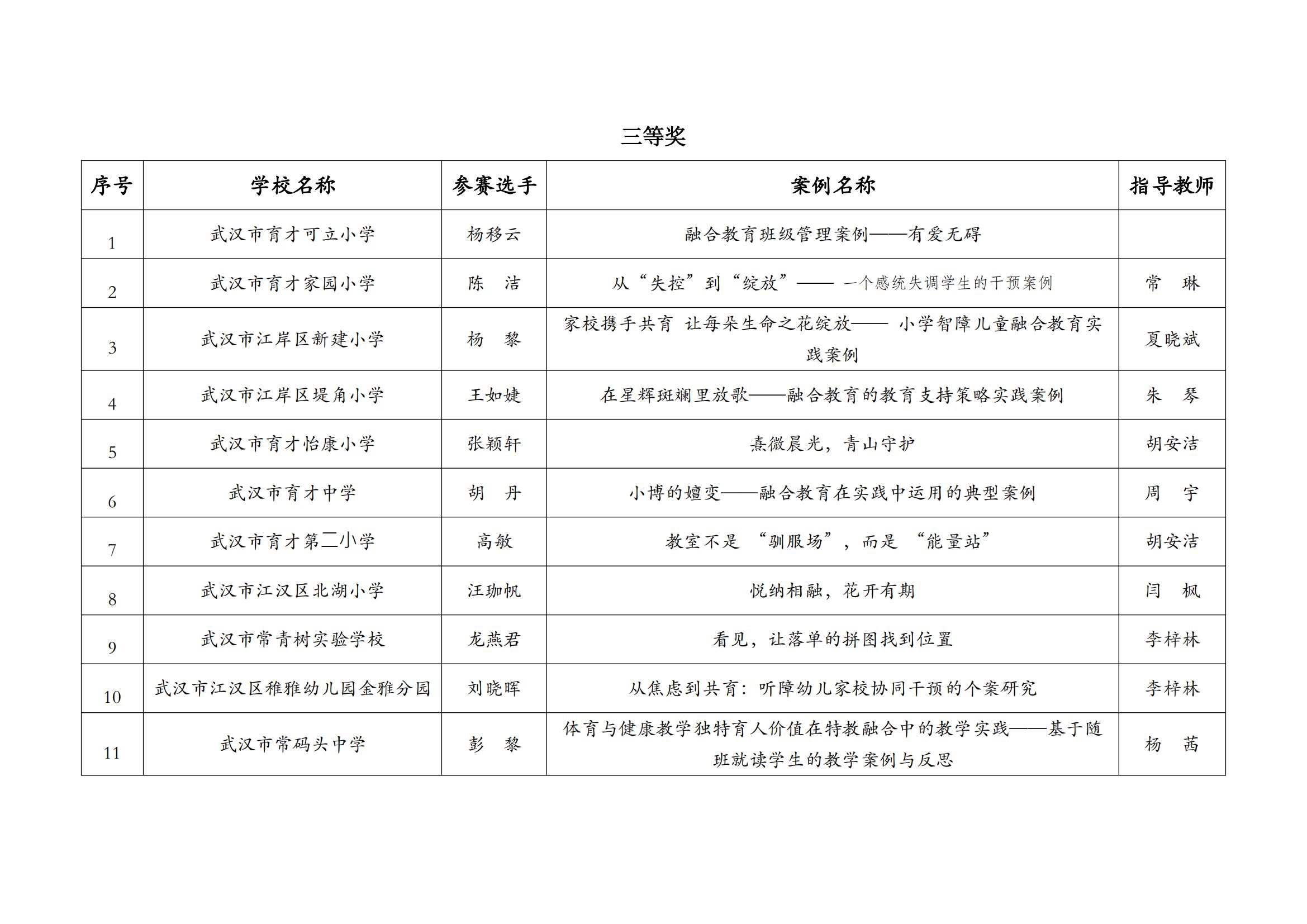 关于2025年武汉市普通学校(幼儿园)融合教育案例评比获奖结果公示