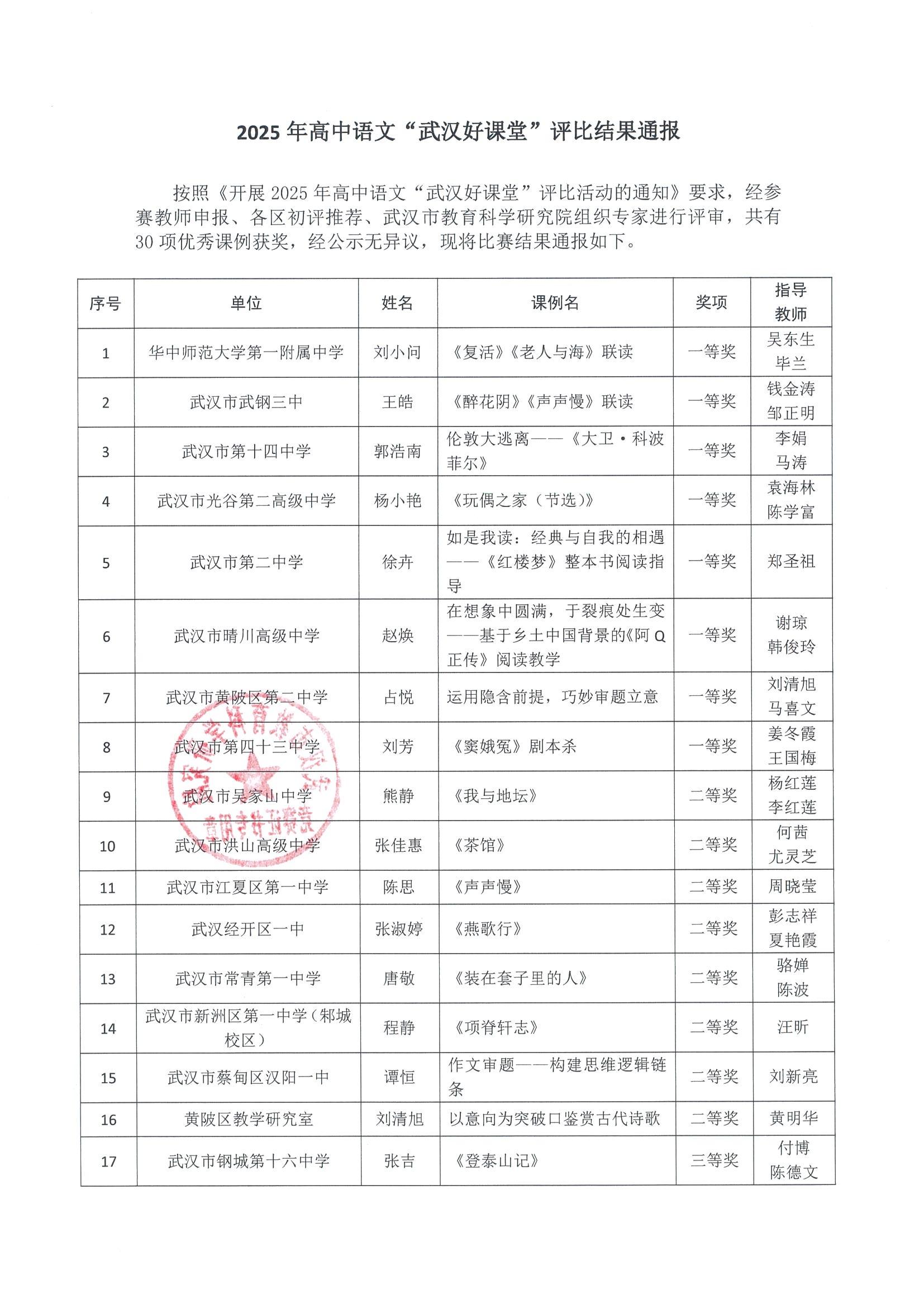 上一篇:2025武汉市中学音乐“新三科”学科优质课比