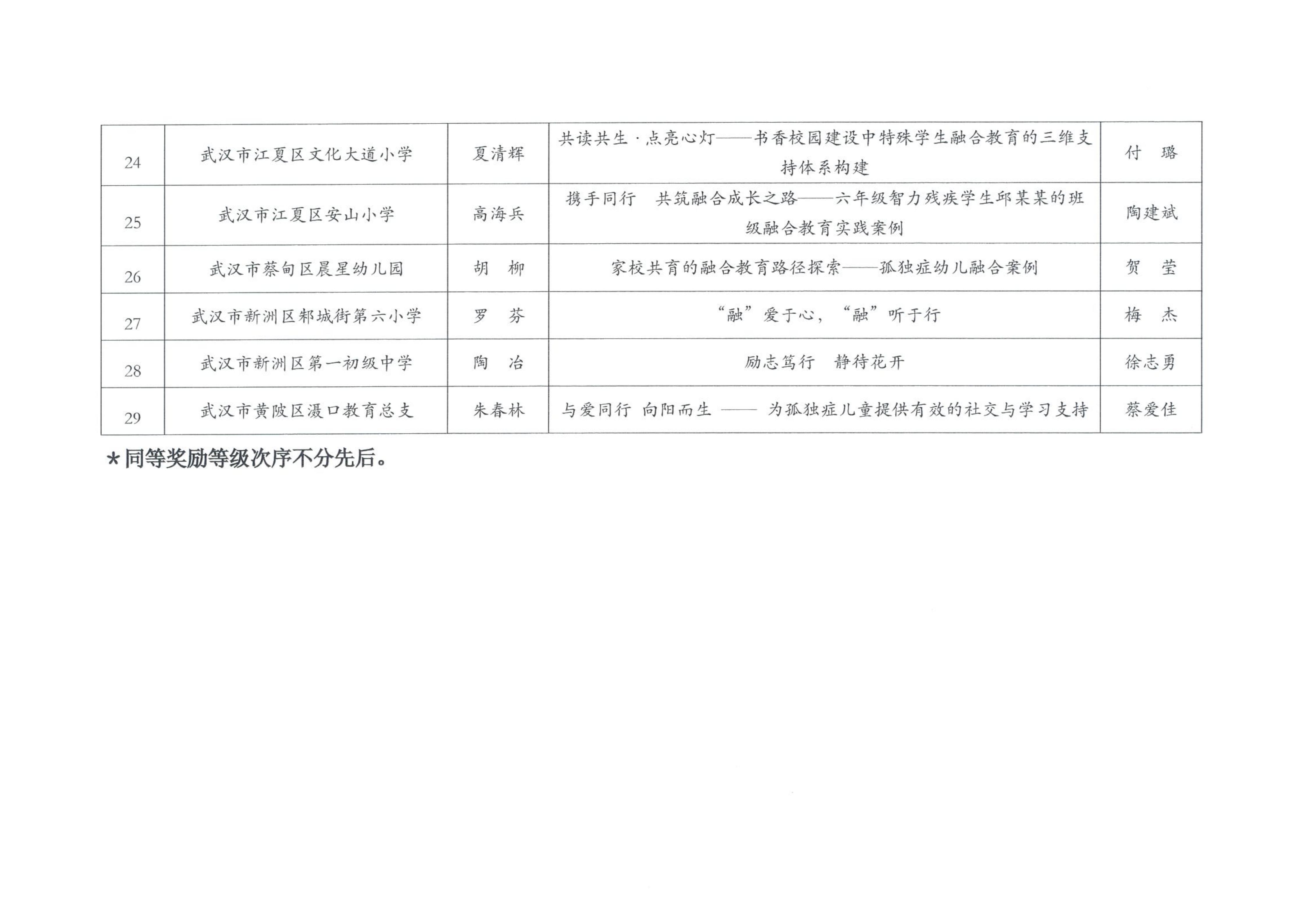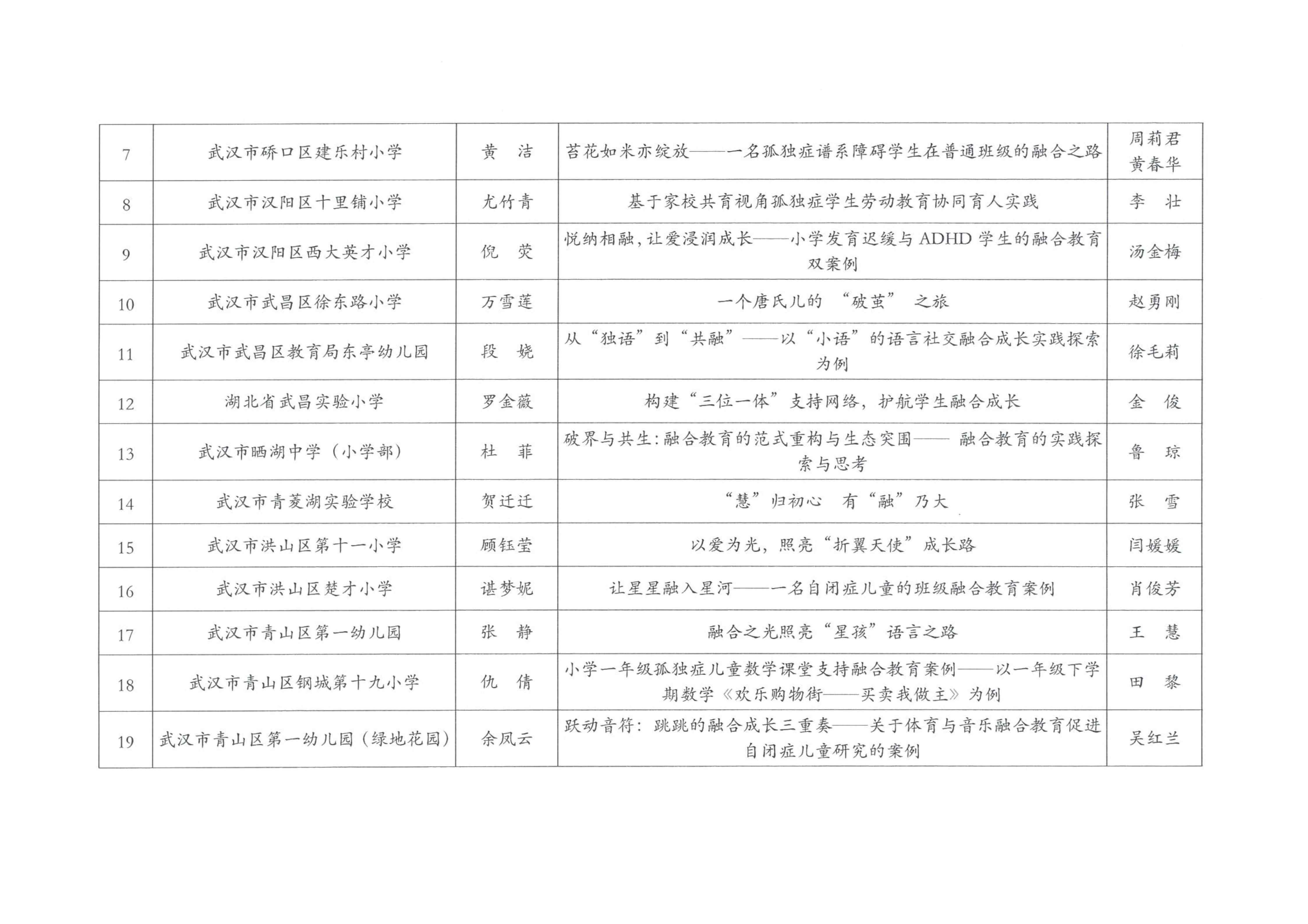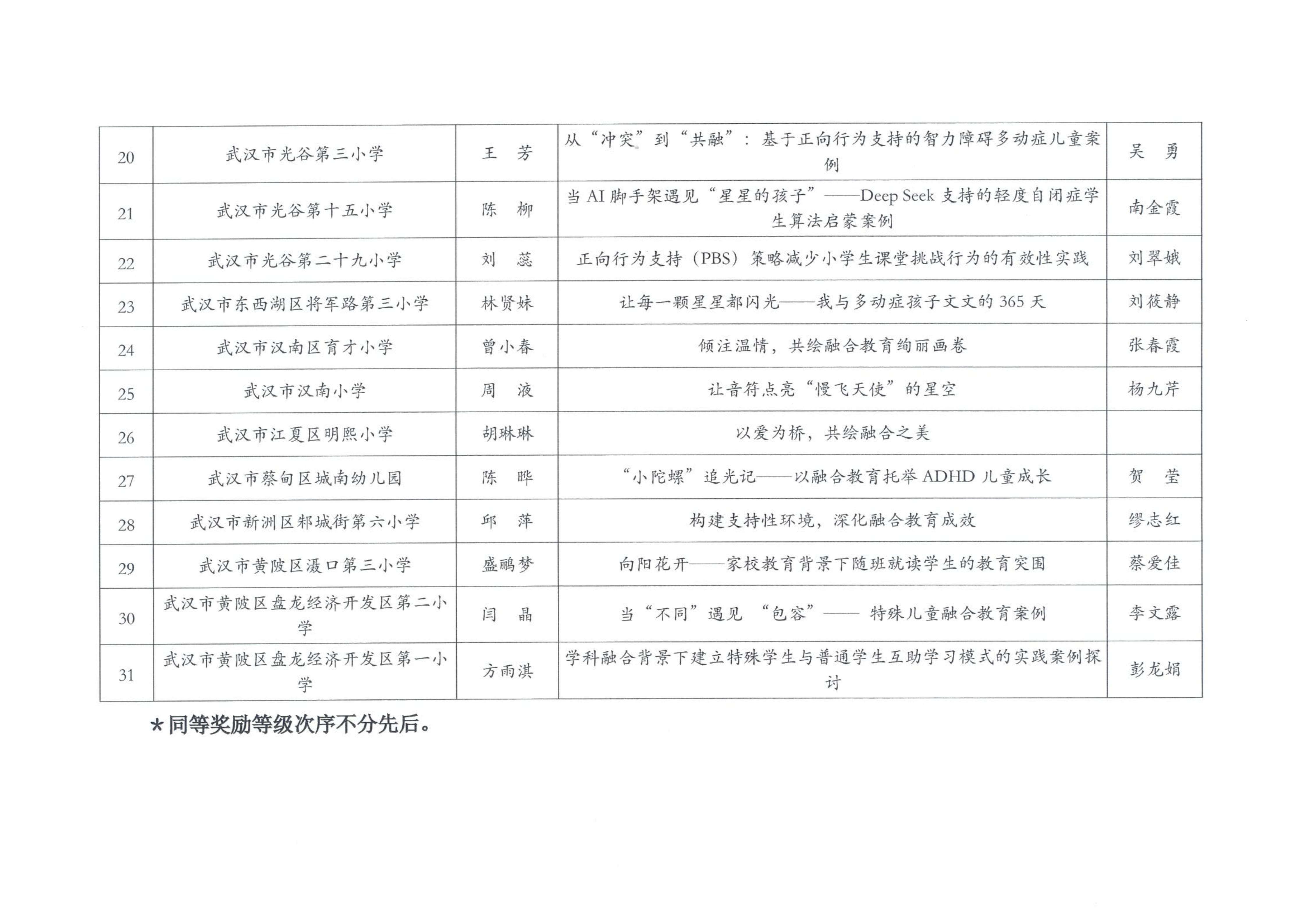 关于 2025年武汉市普通学校(幼儿园)融合教育案例评比获奖结果通报