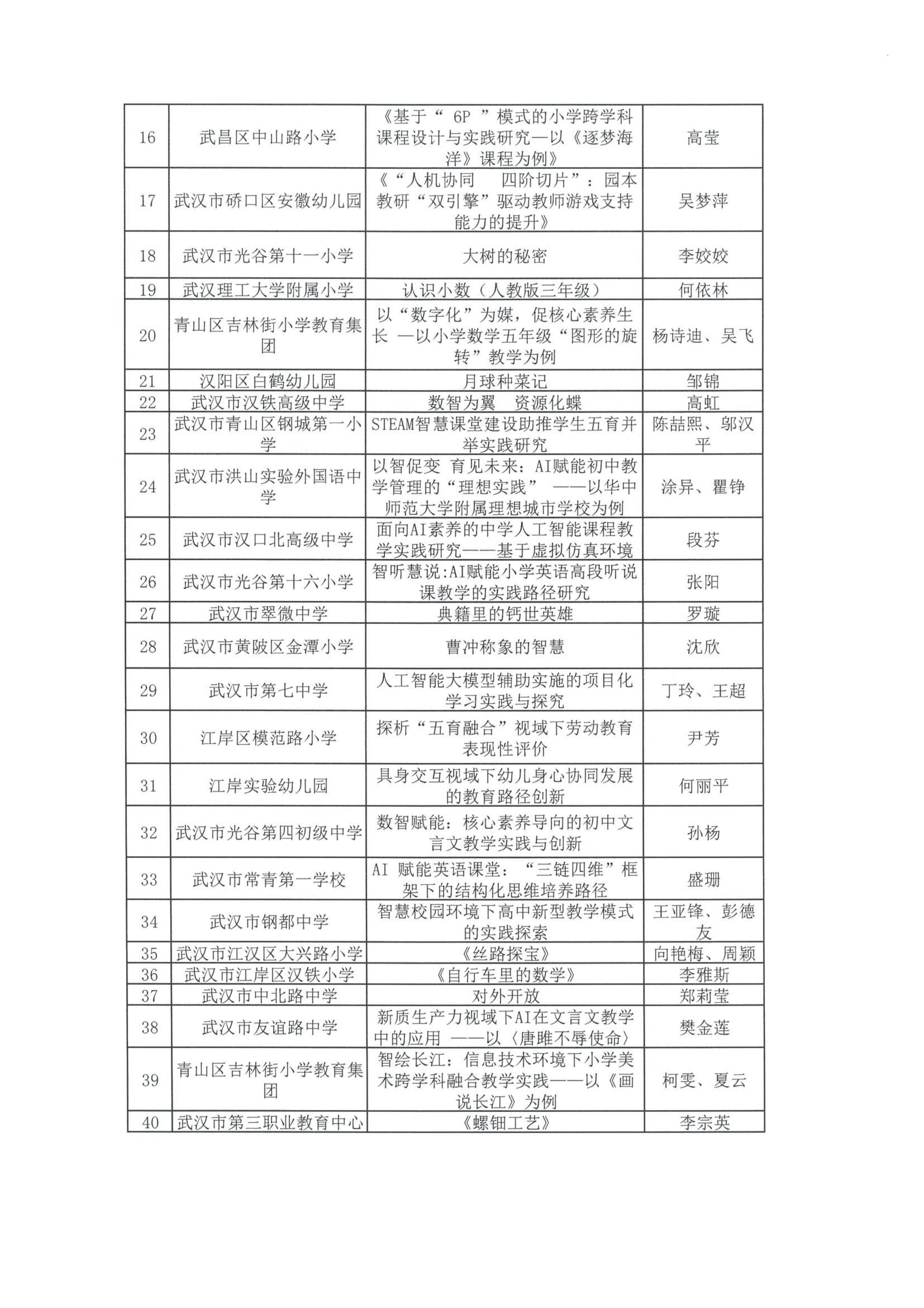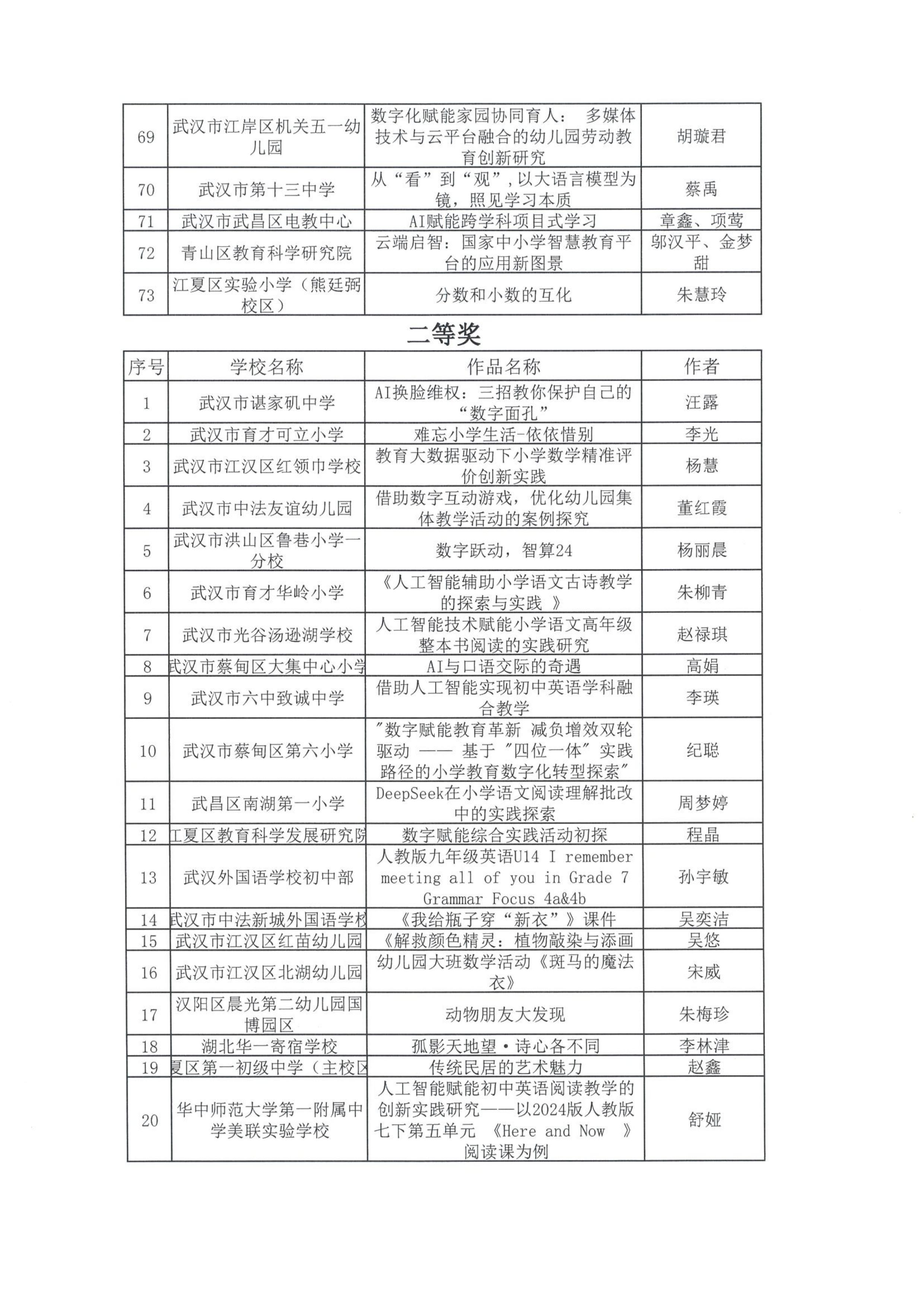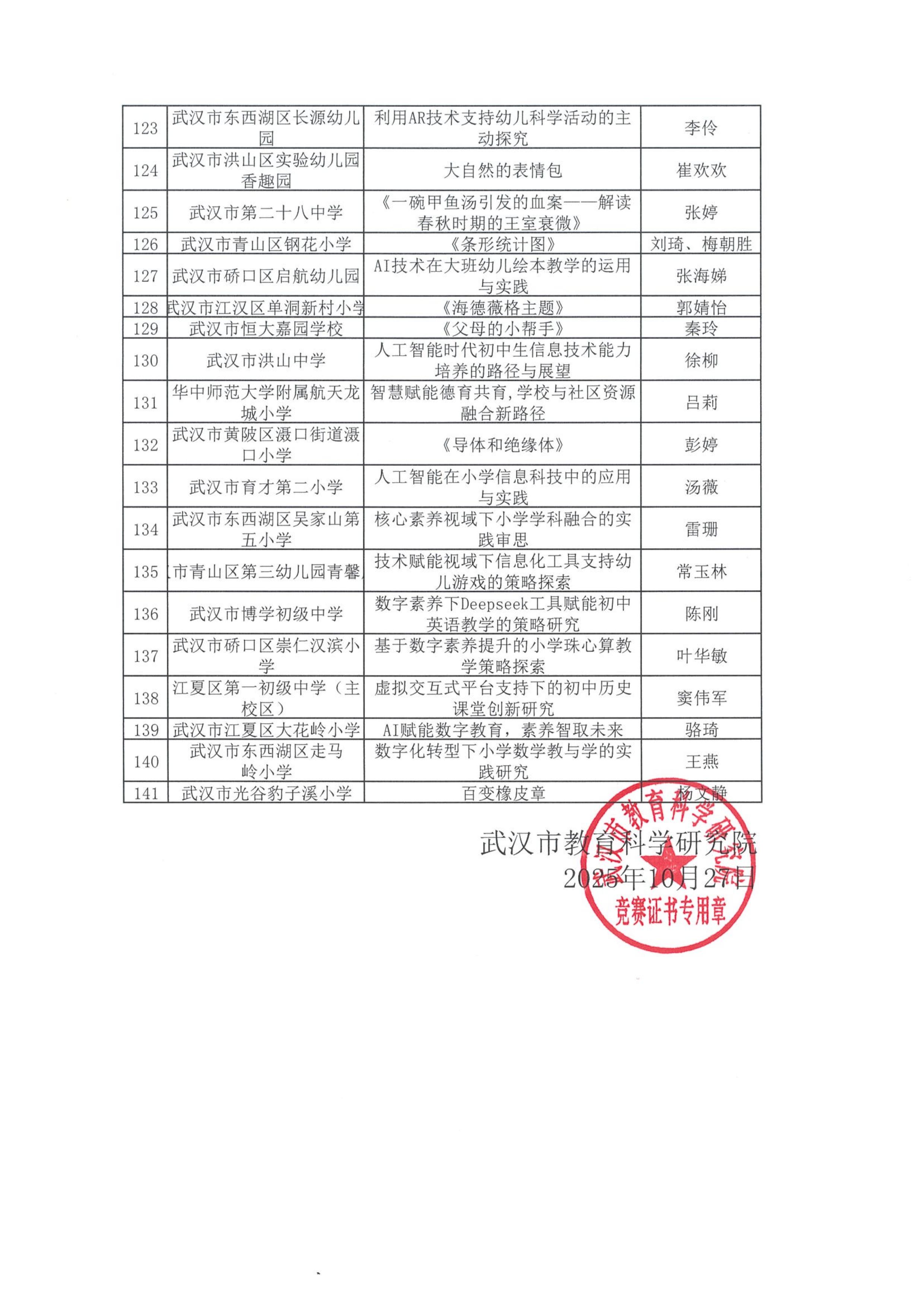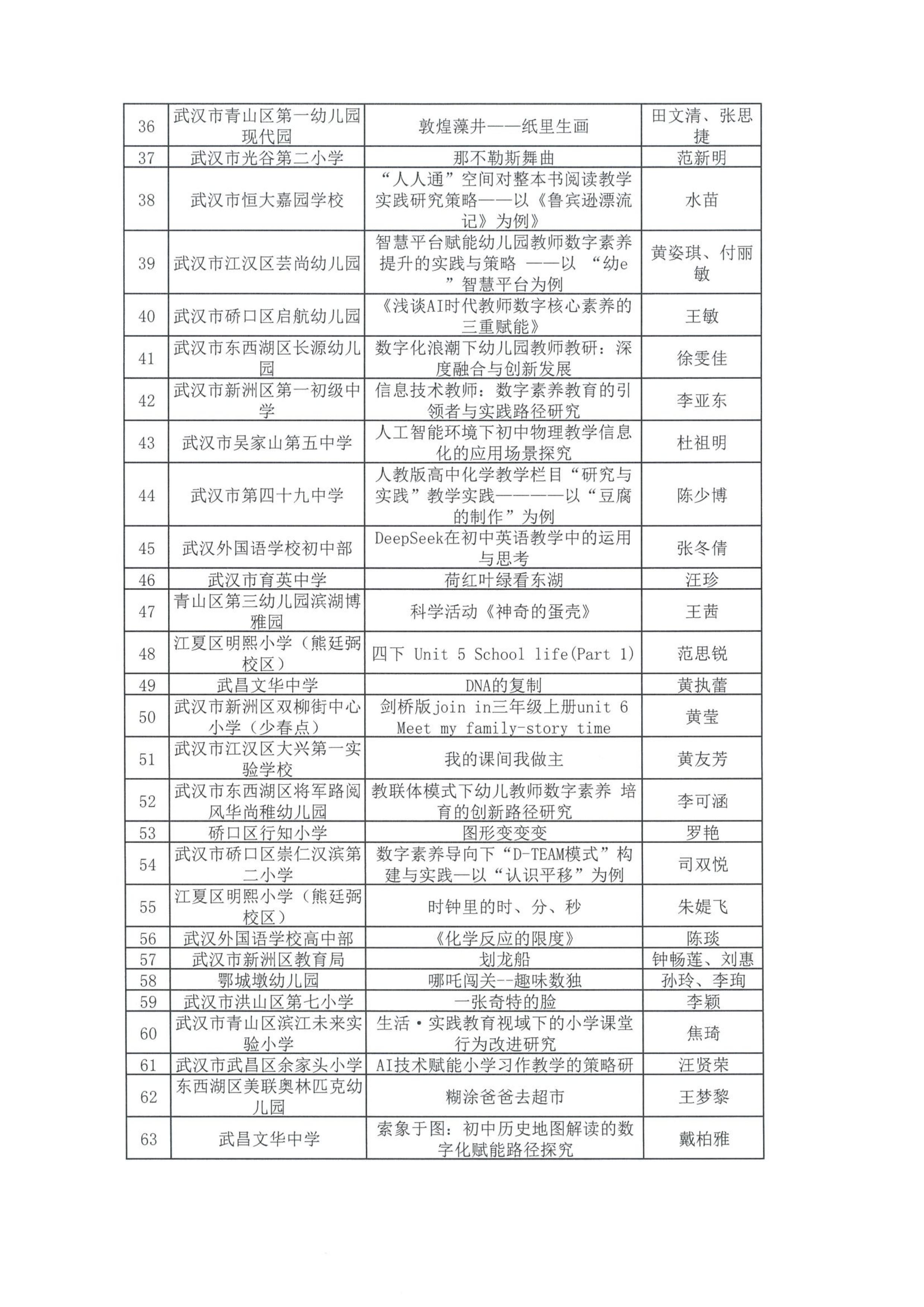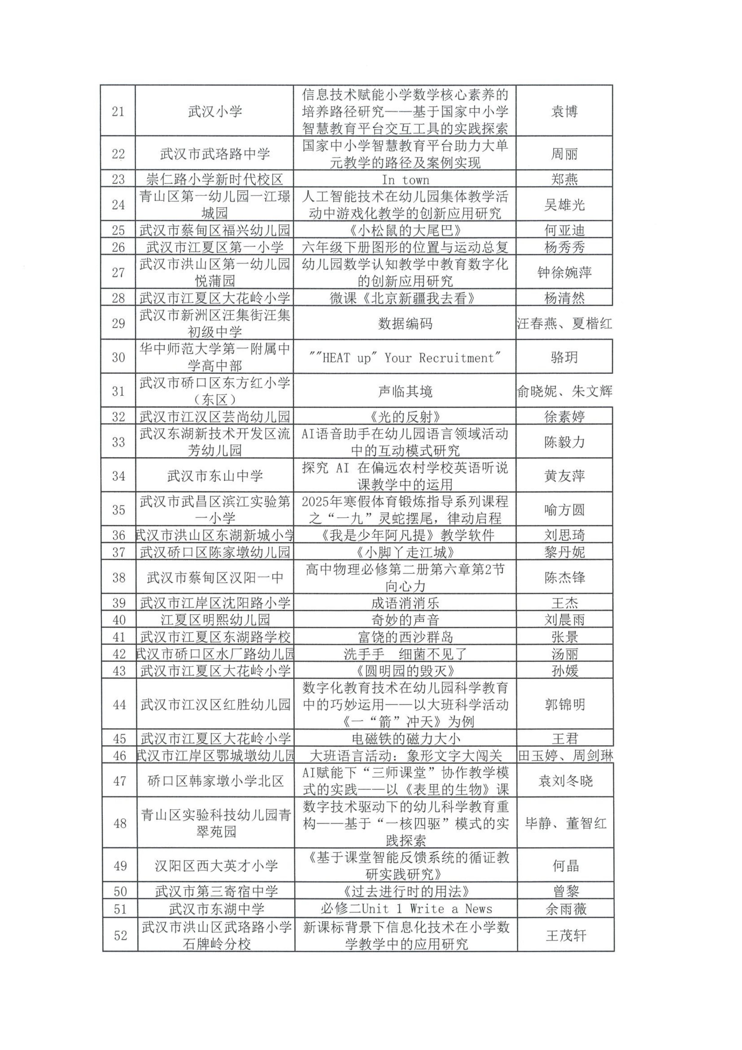 “武汉好案例”2025年武汉市教师数字素养提升案例评比获奖结果的通报