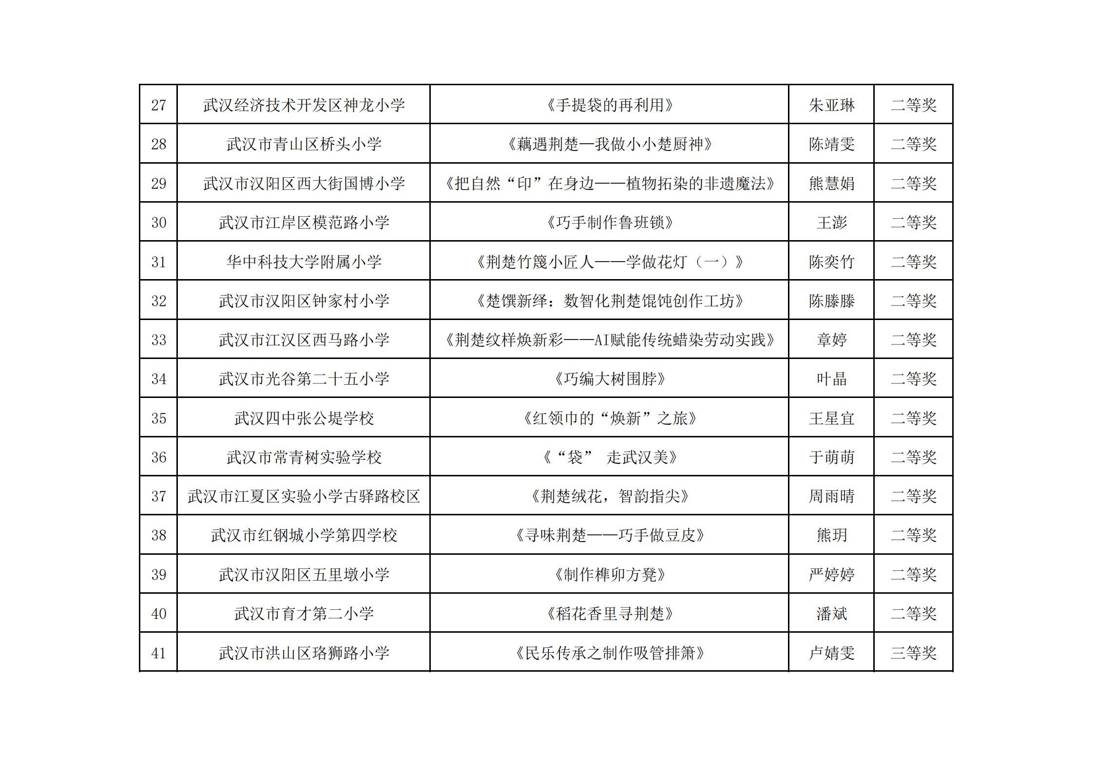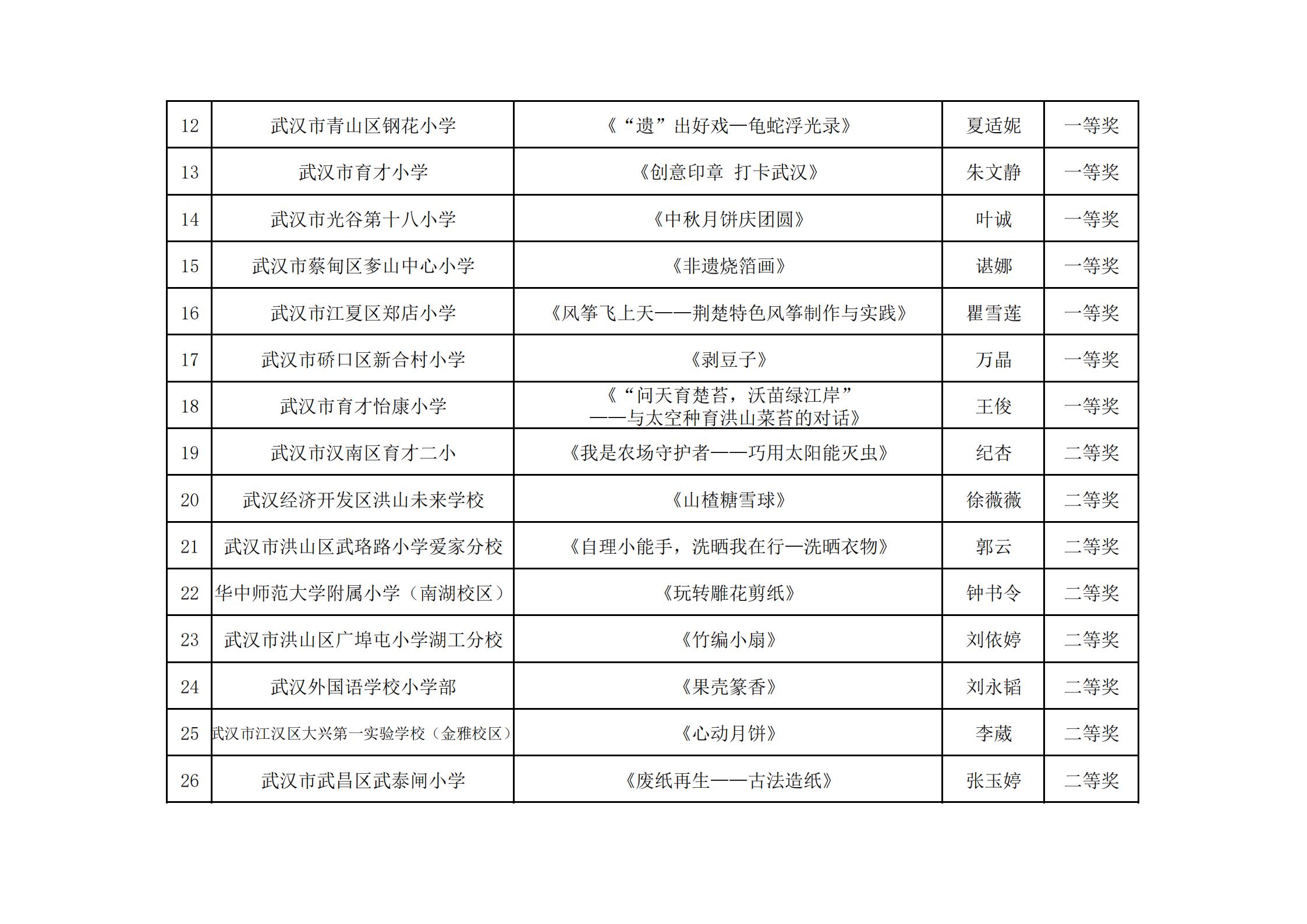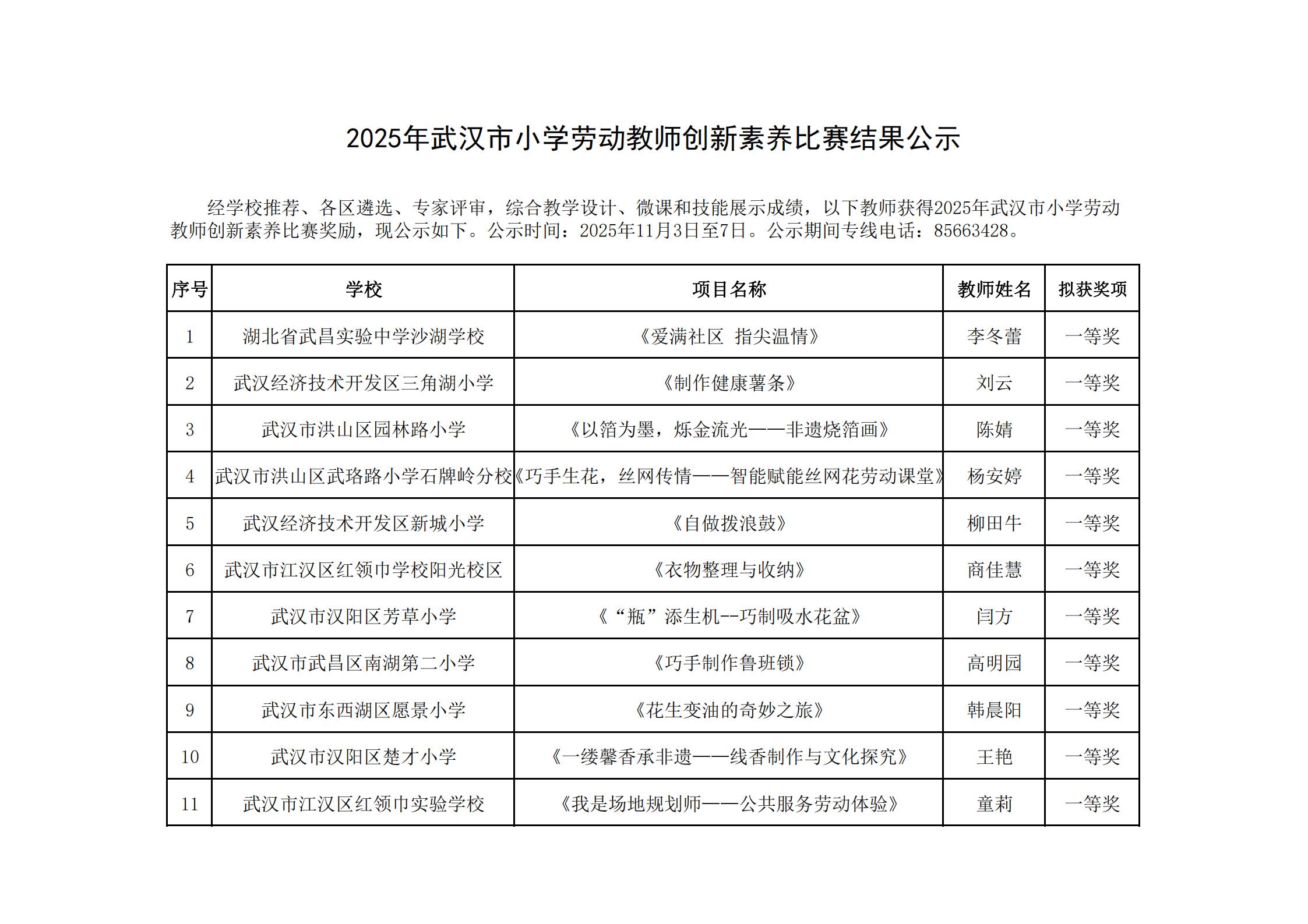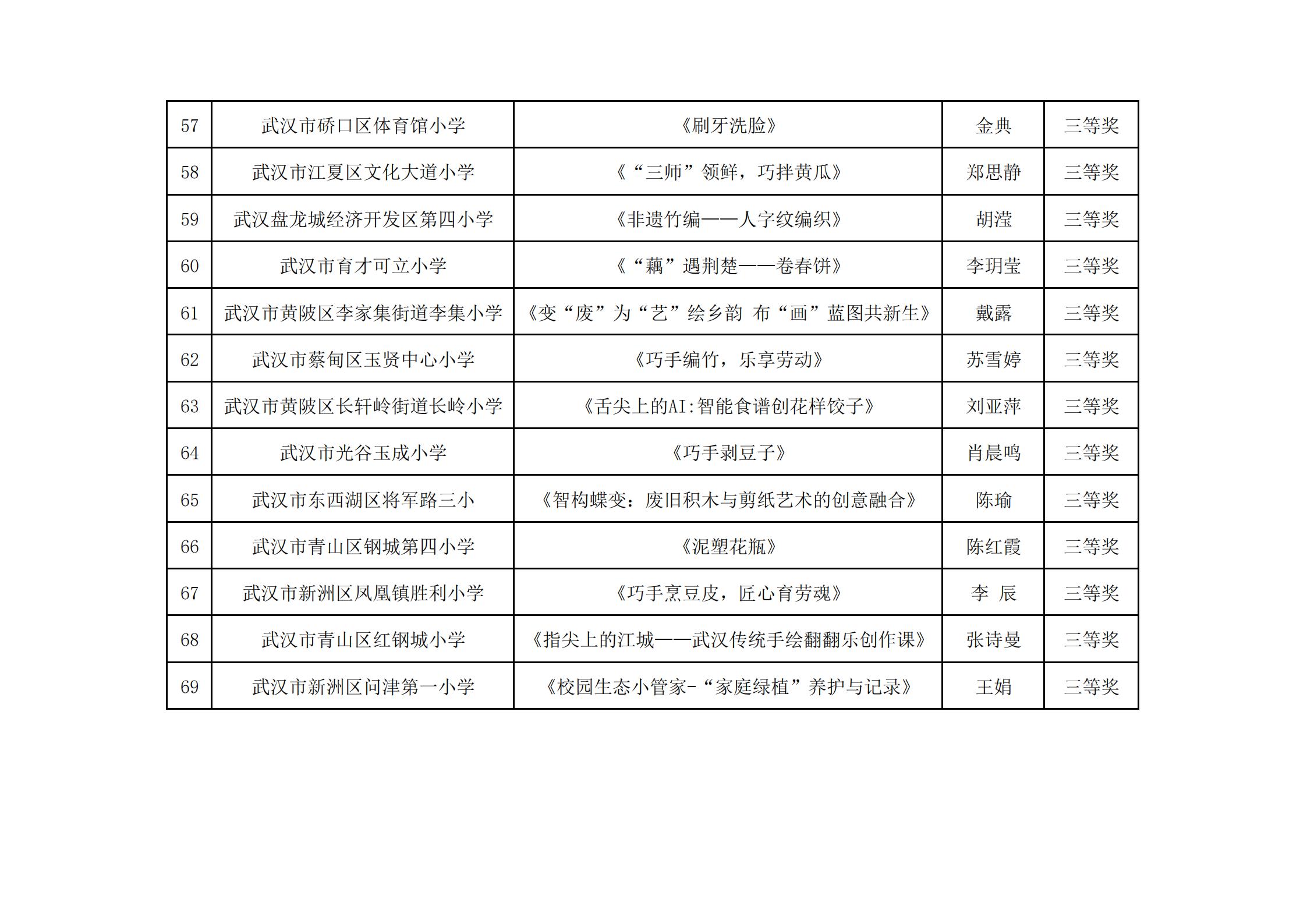 2025年武汉市小学劳动教师创新素养比赛结果公示