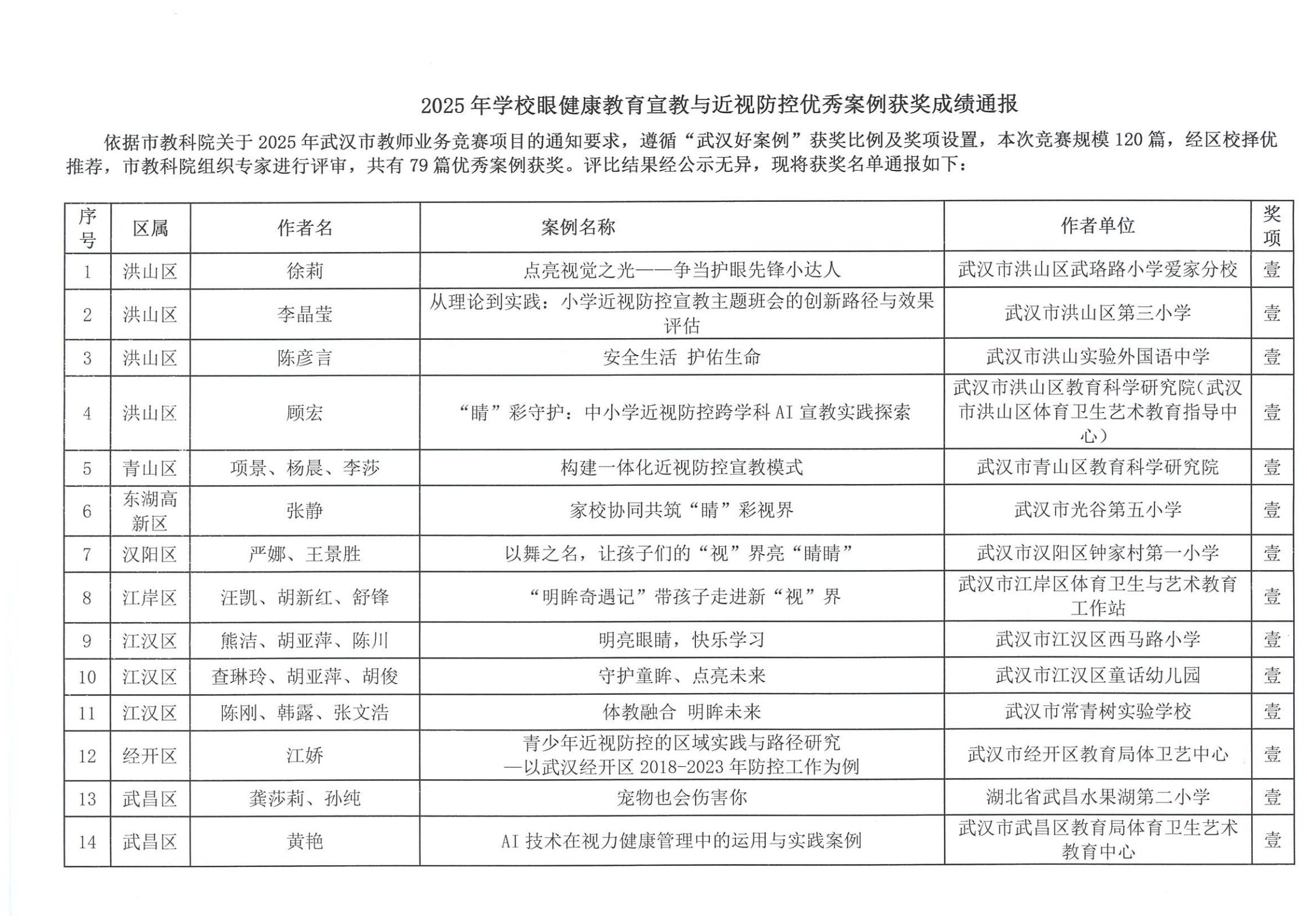 2025年学校眼健康教育宣教与近视防控优秀案例获奖成绩通报