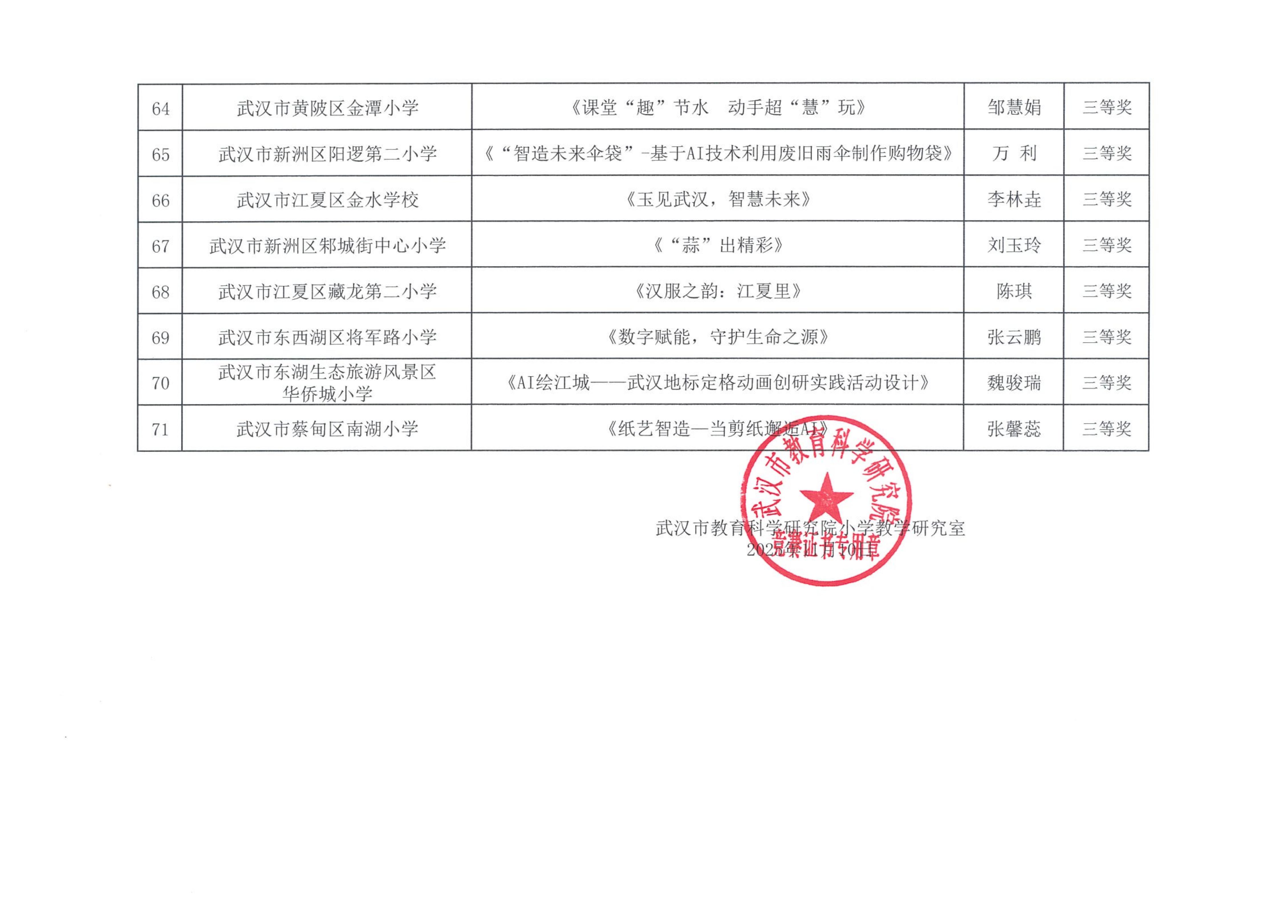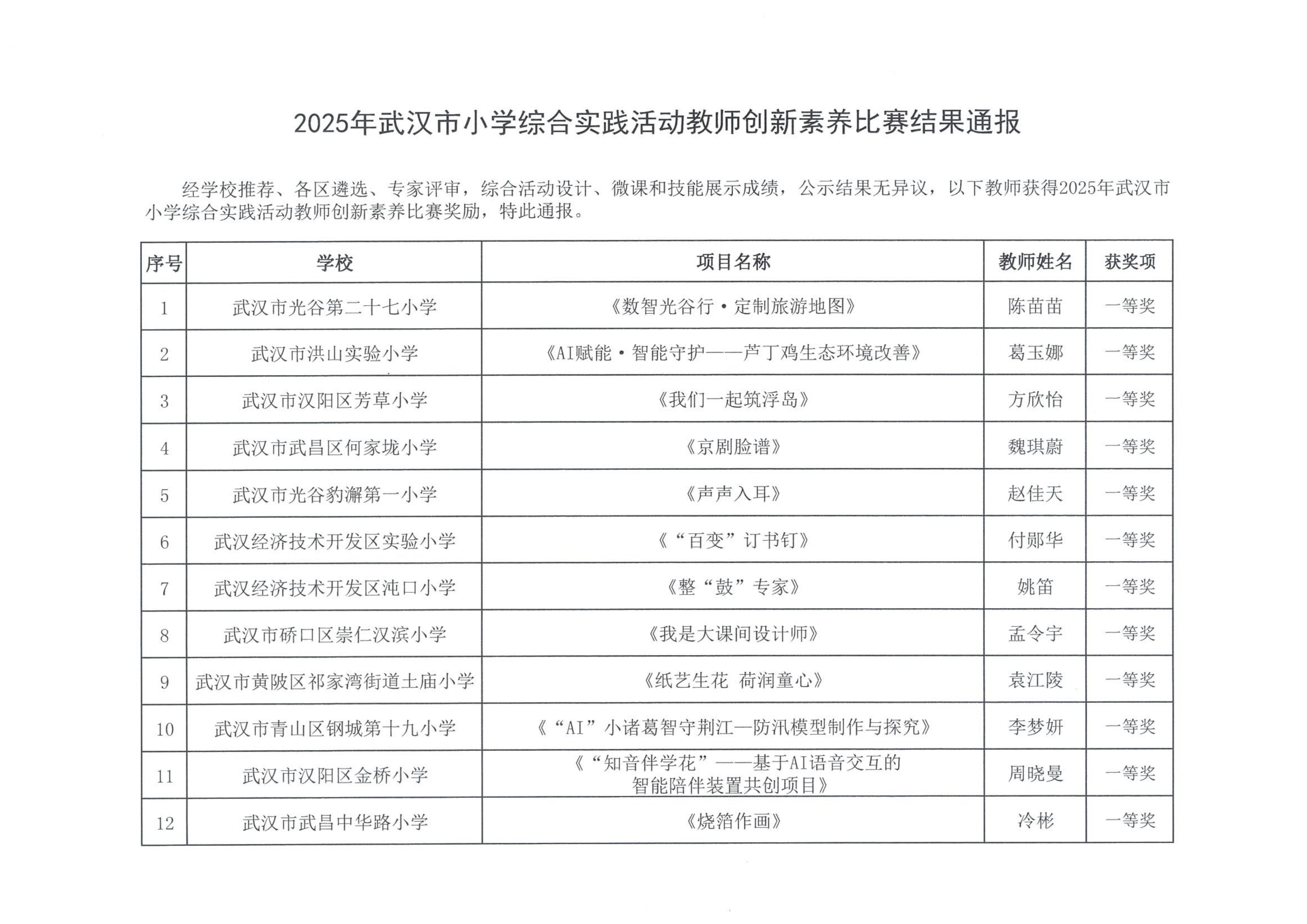 2025年武汉市小学综合实践活动教师创新素养比赛结果通报