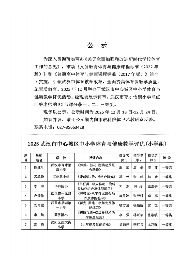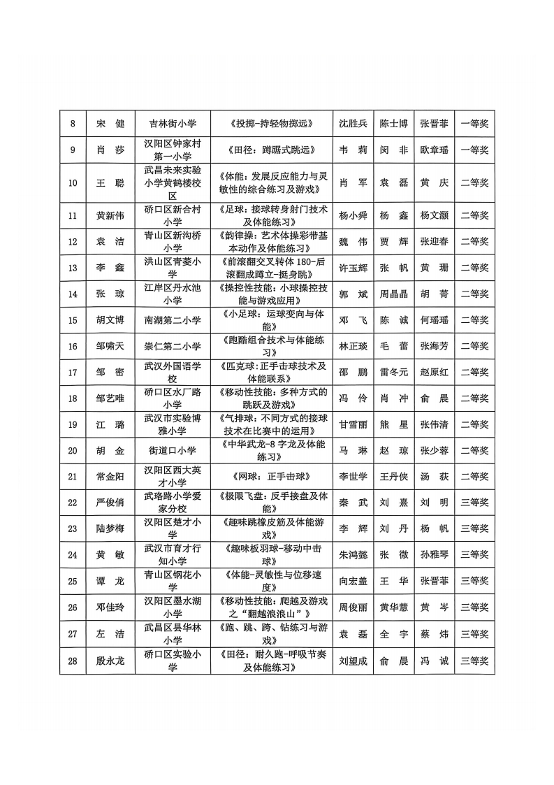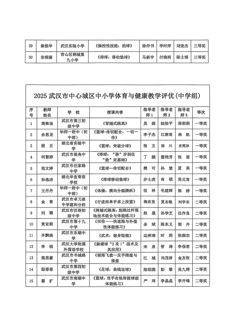 2025武汉市中心城区中小学体育与健康教学评优活动公示