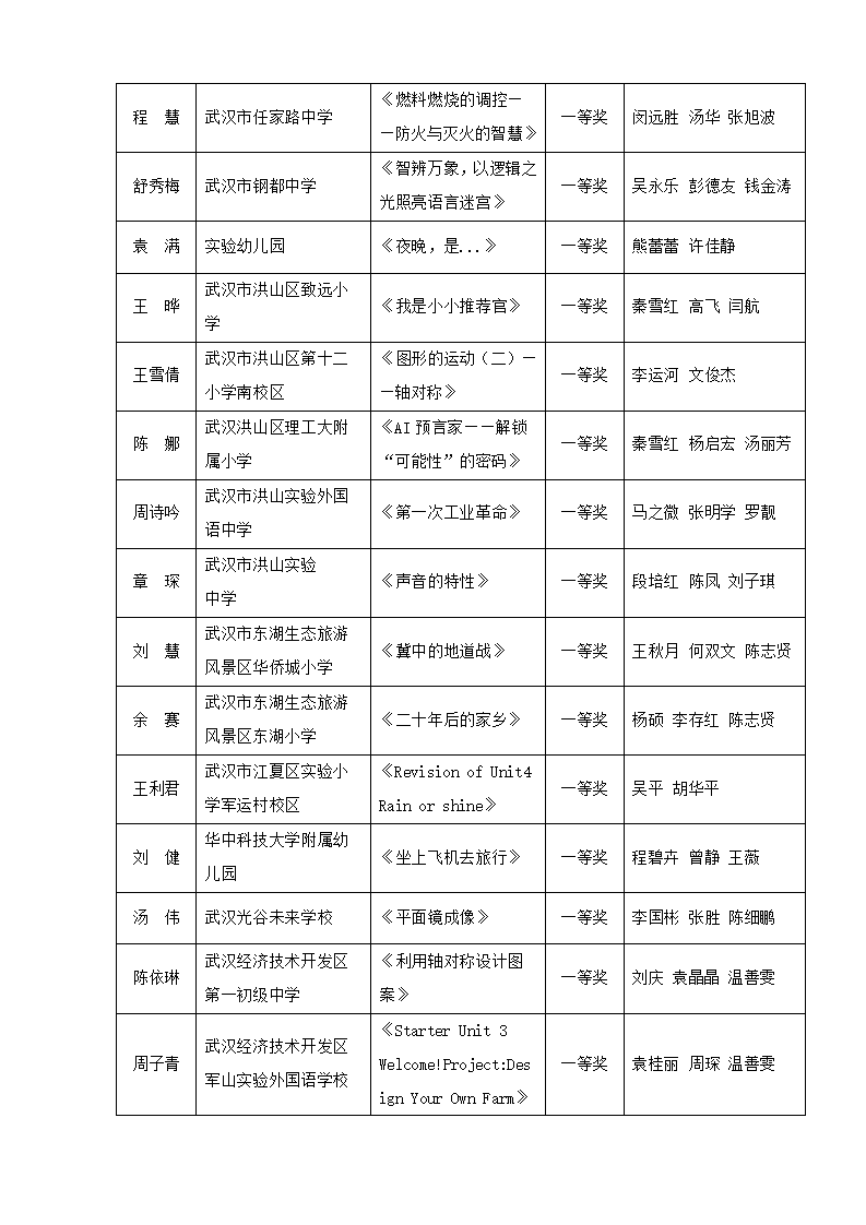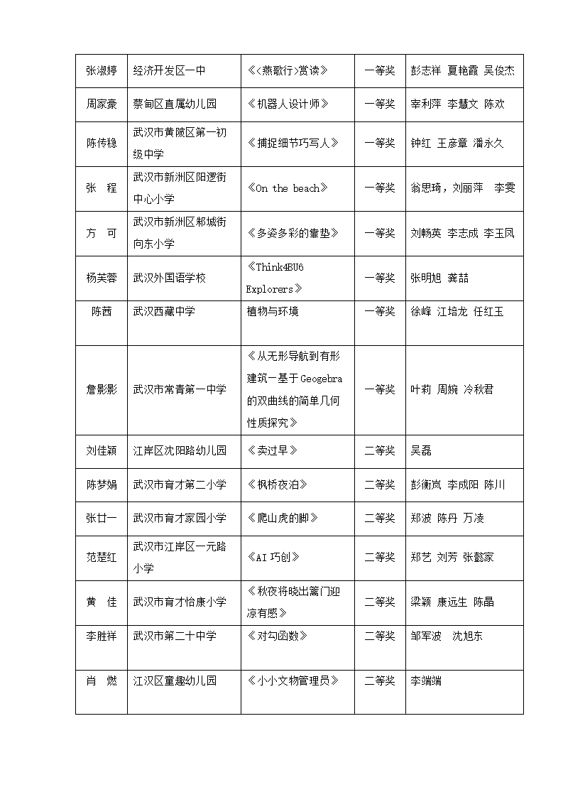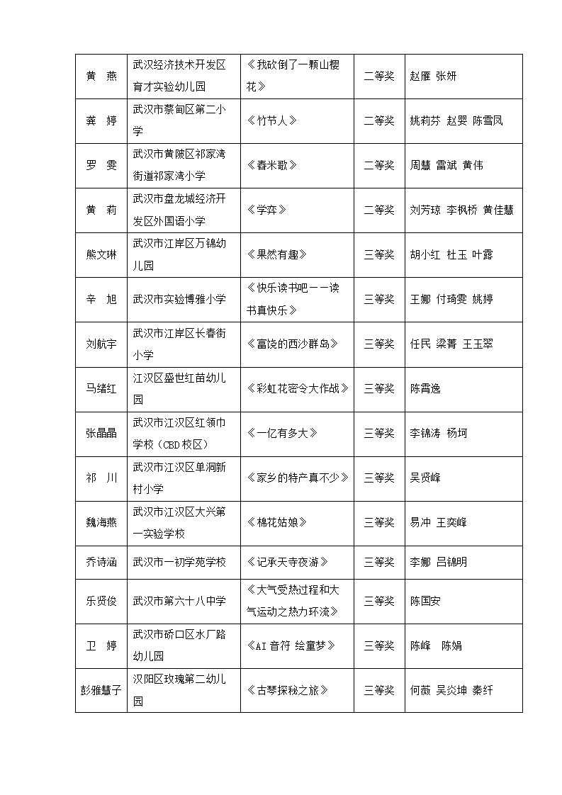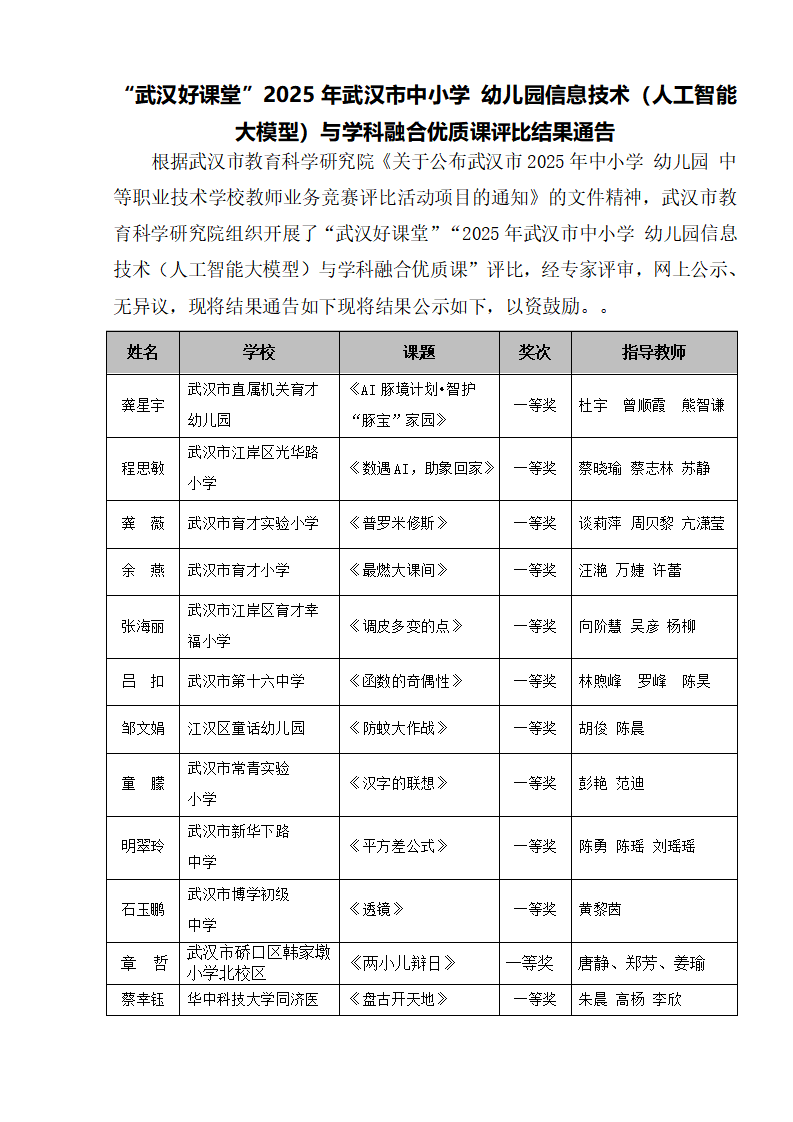 “武汉好课堂”205年武汉市中小学、幼儿园信息技术(人工智能大模型)与课程融合优质课评比结果通告
