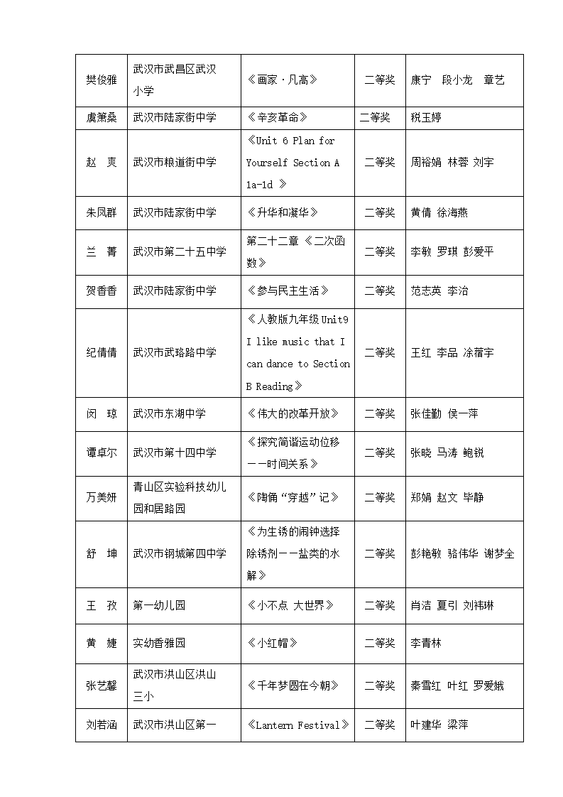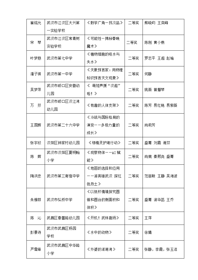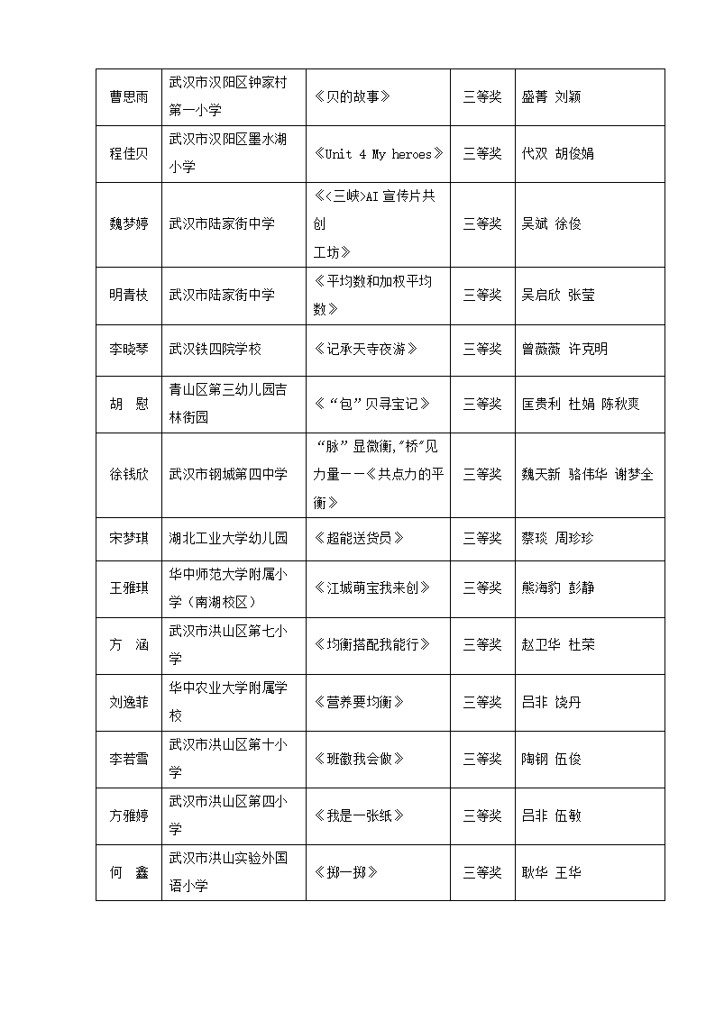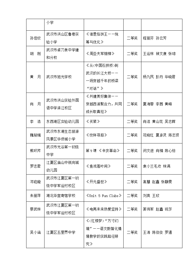 “武汉好课堂”205年武汉市中小学、幼儿园信息技术(人工智能大模型)与课程融合优质课评比结果通告