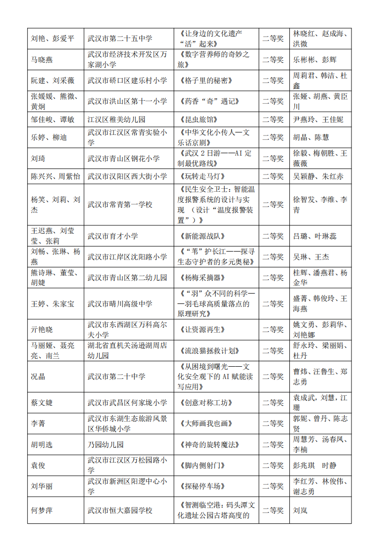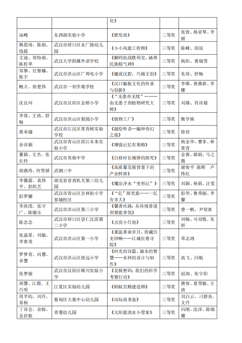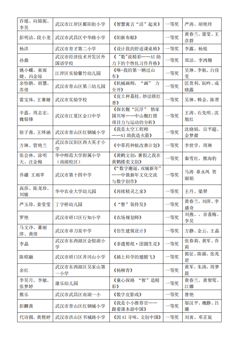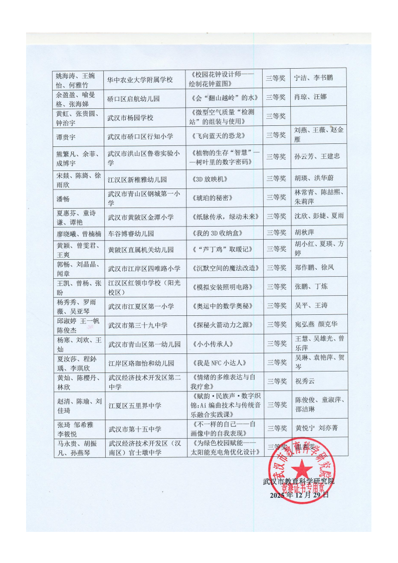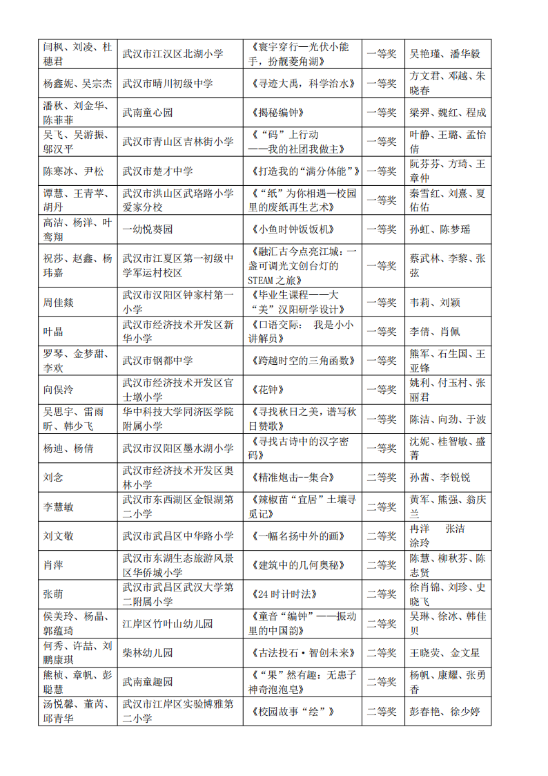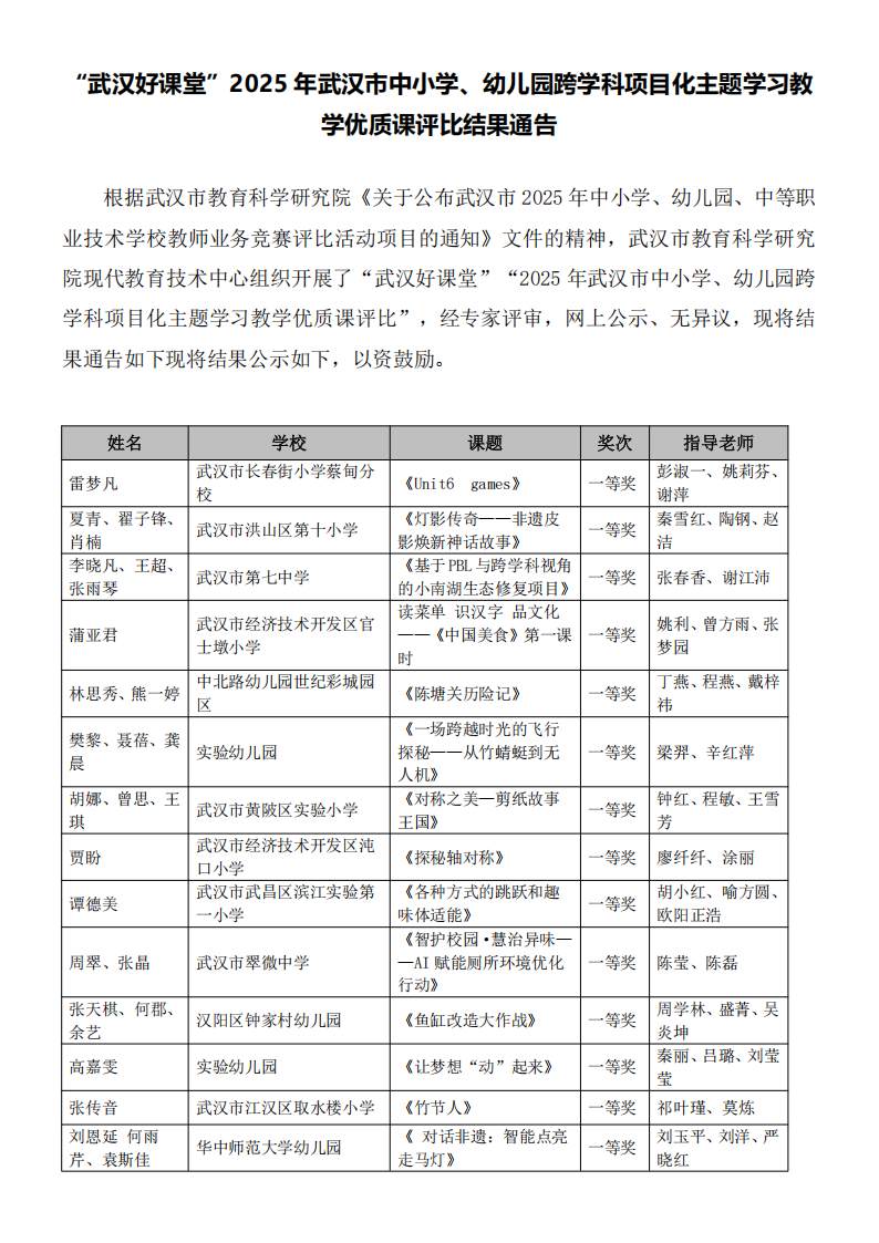 “武汉好课堂”2025年武汉市中小学、幼儿园跨学科项目化主题学习教学优质课评比活动结果通告