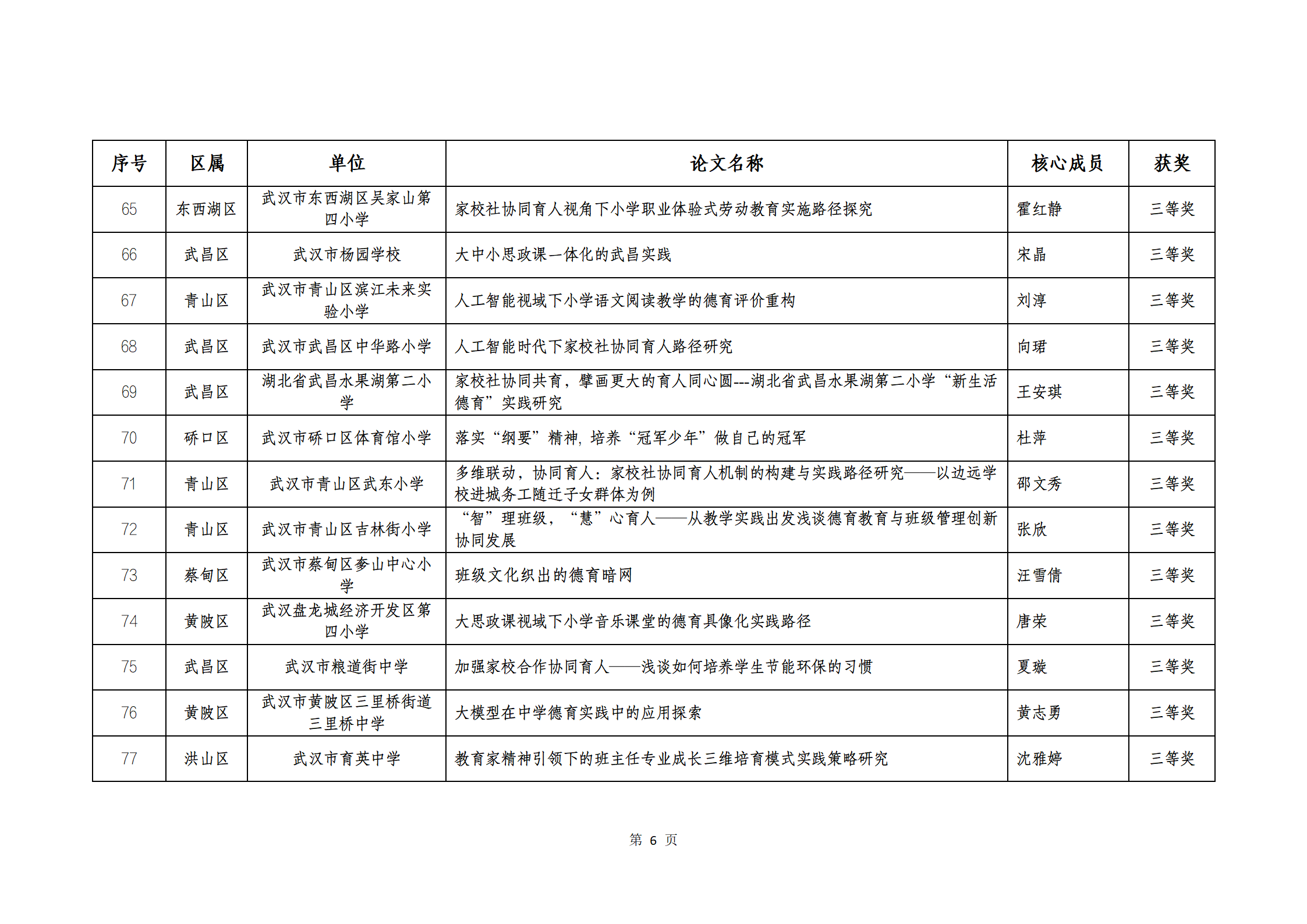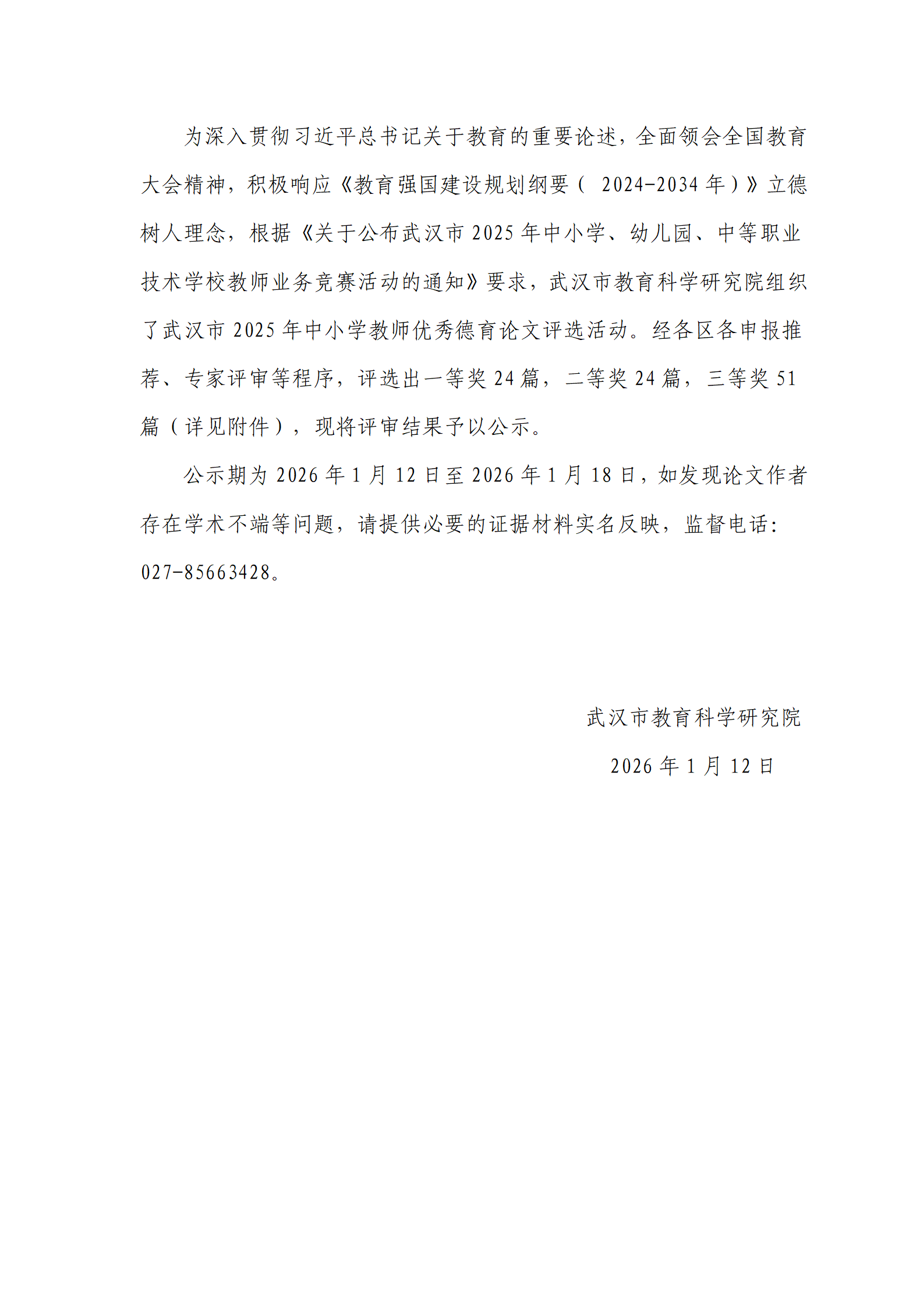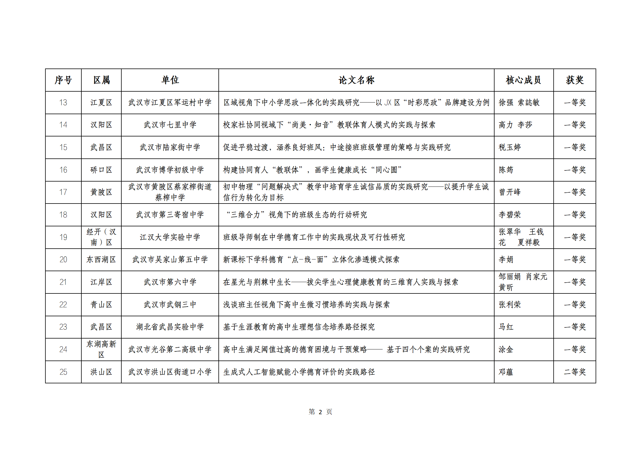 武汉市 2025 年中小学教师优秀德育论文获奖结果公示