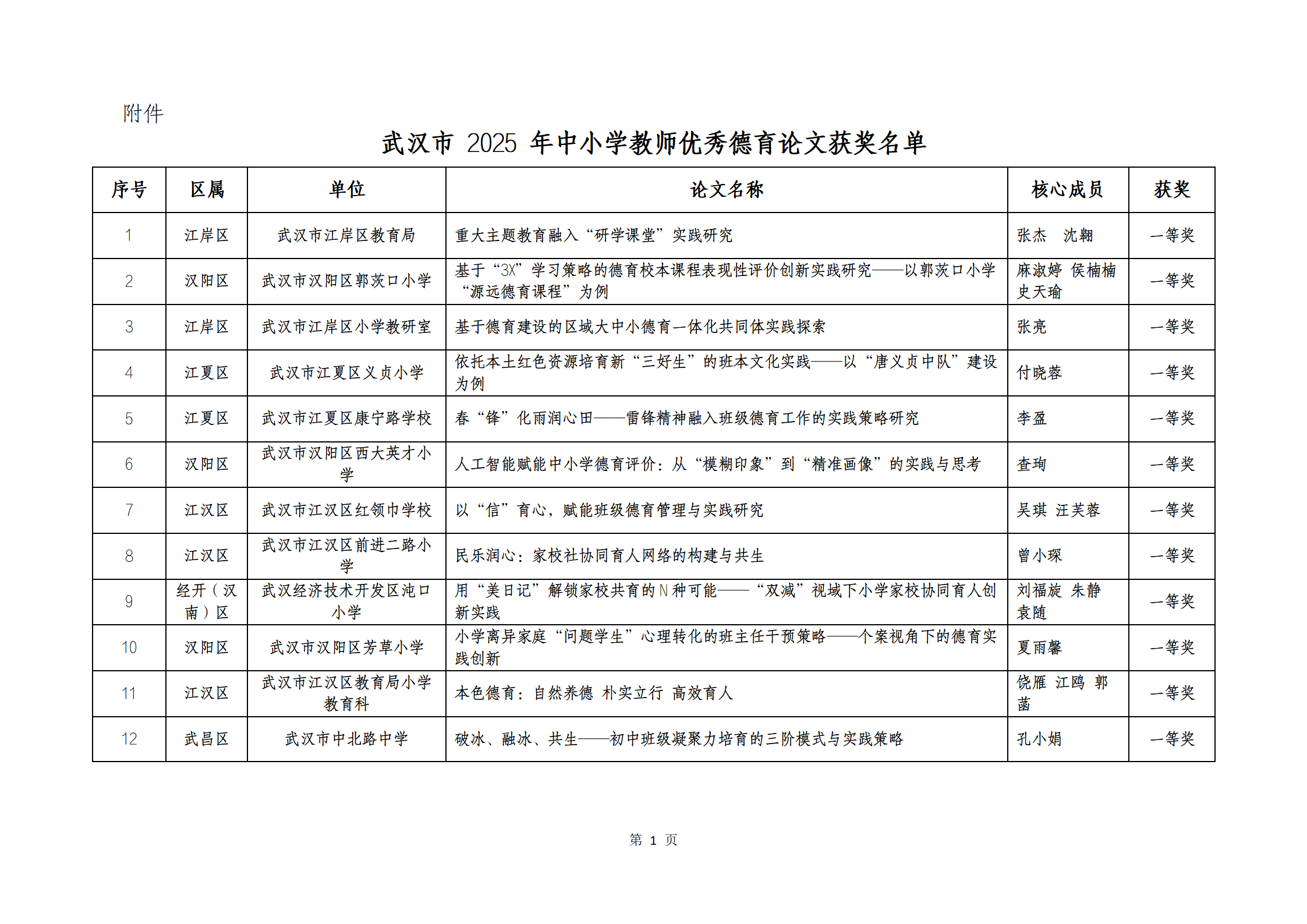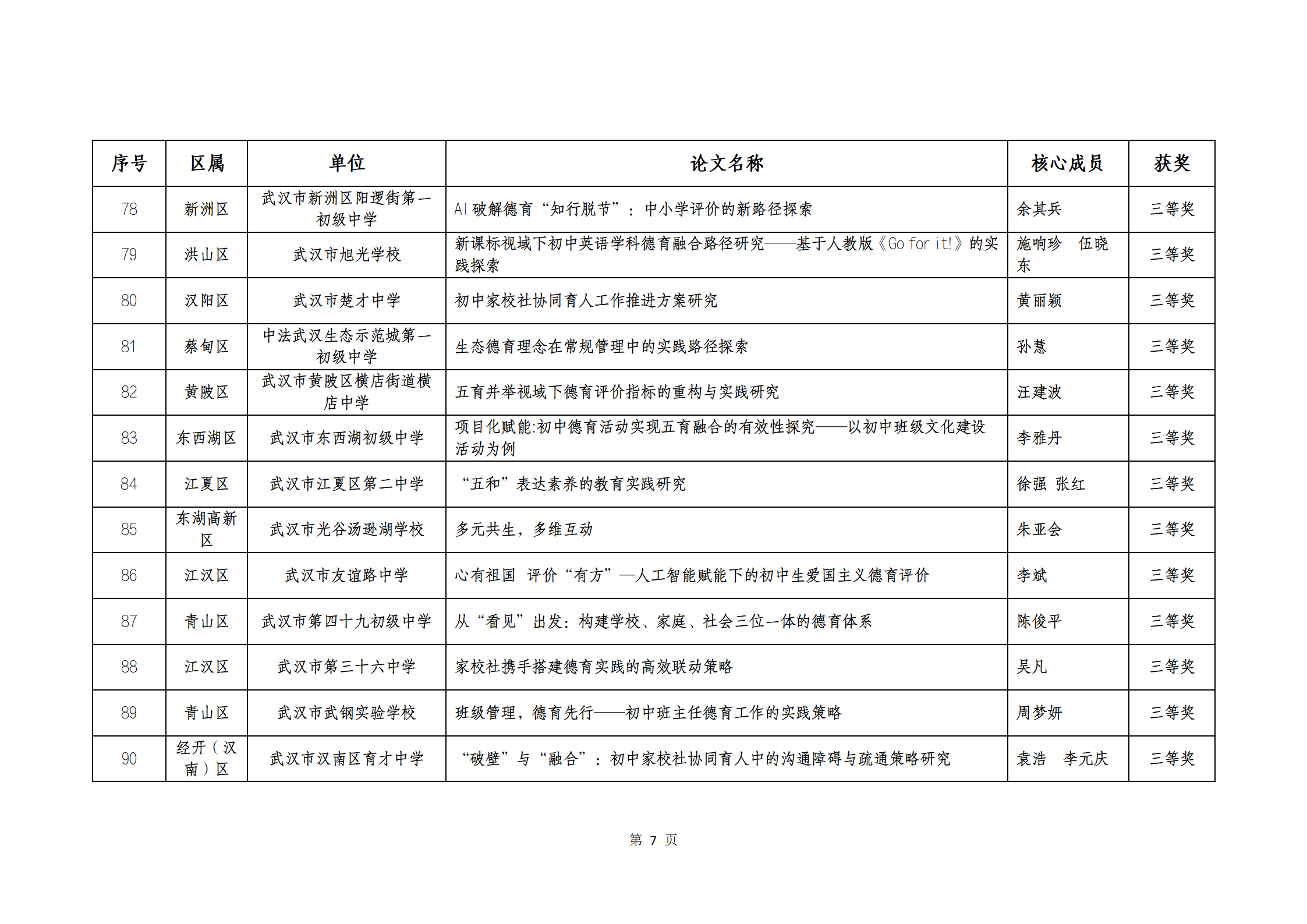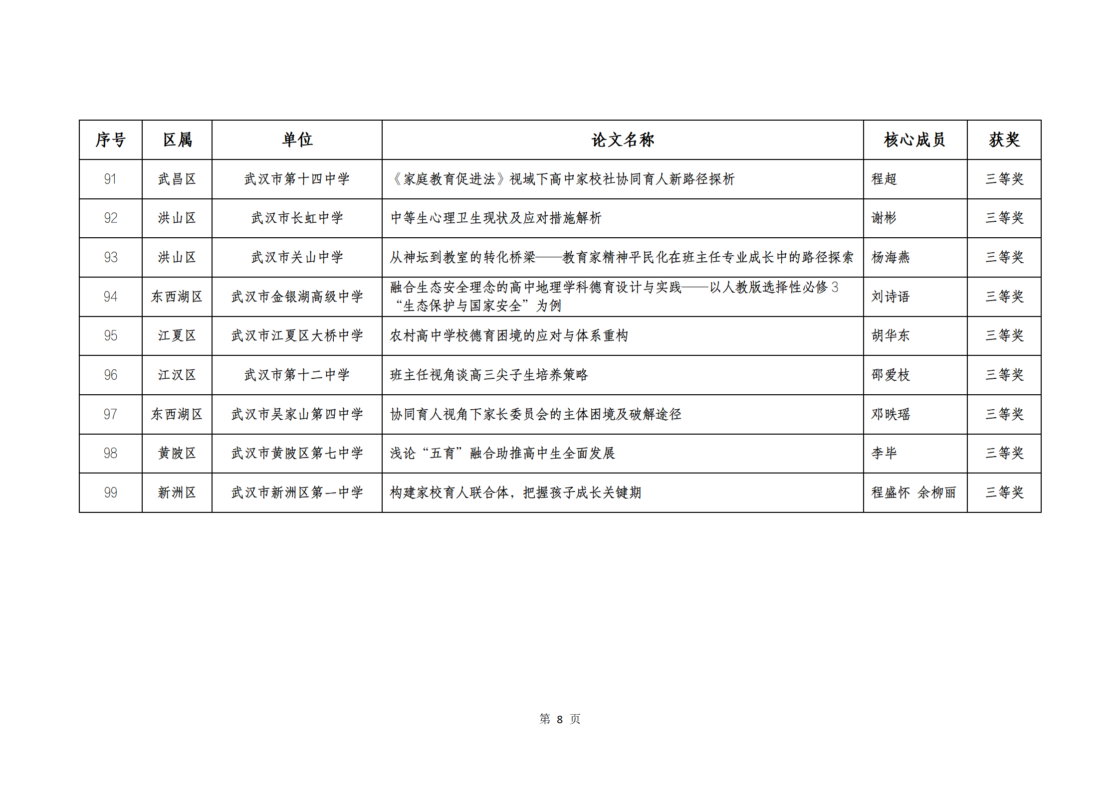 武汉市 2025 年中小学教师优秀德育论文获奖结果公示