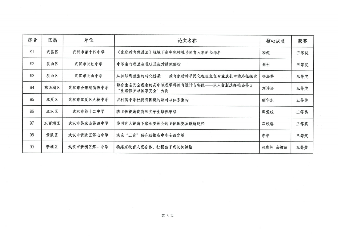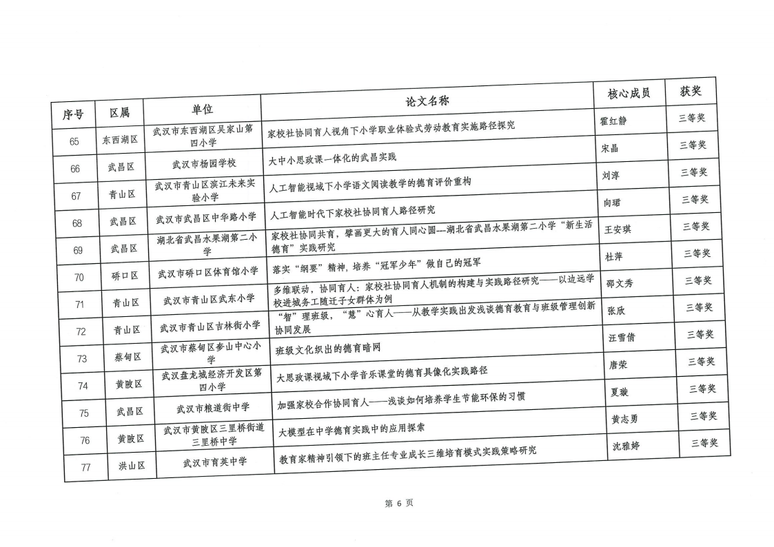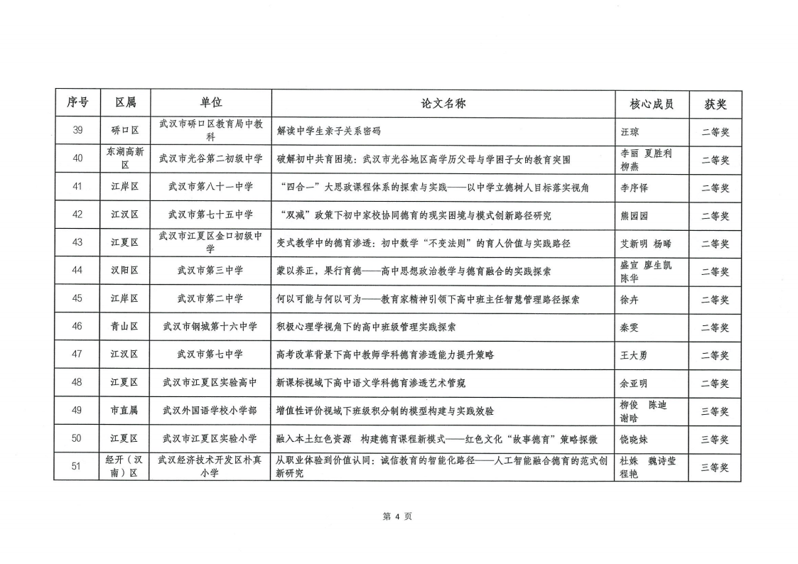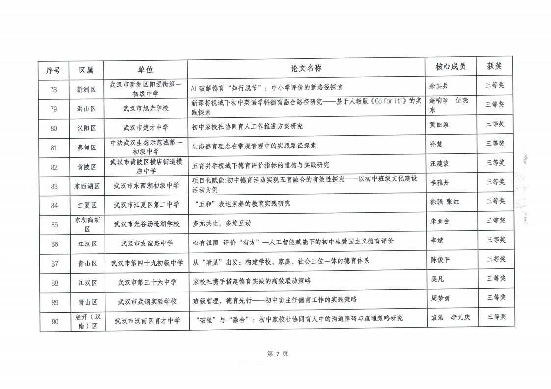 武汉市2025年中小学教师优秀道德论文获奖结果的通报