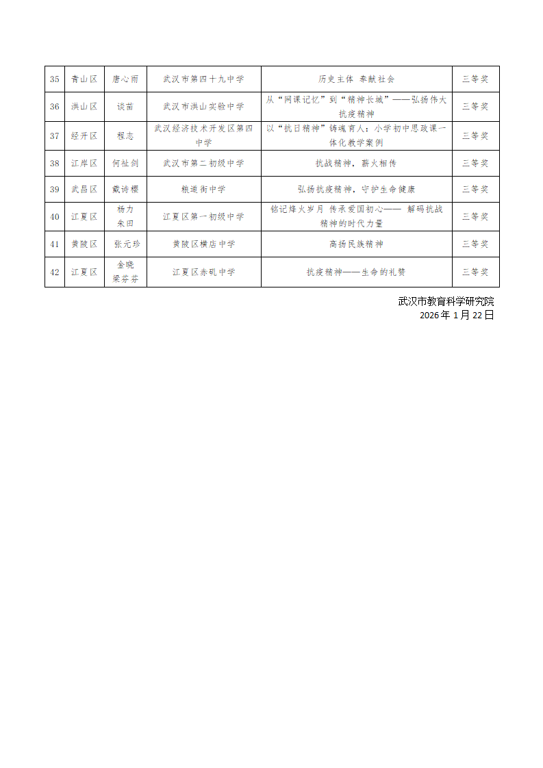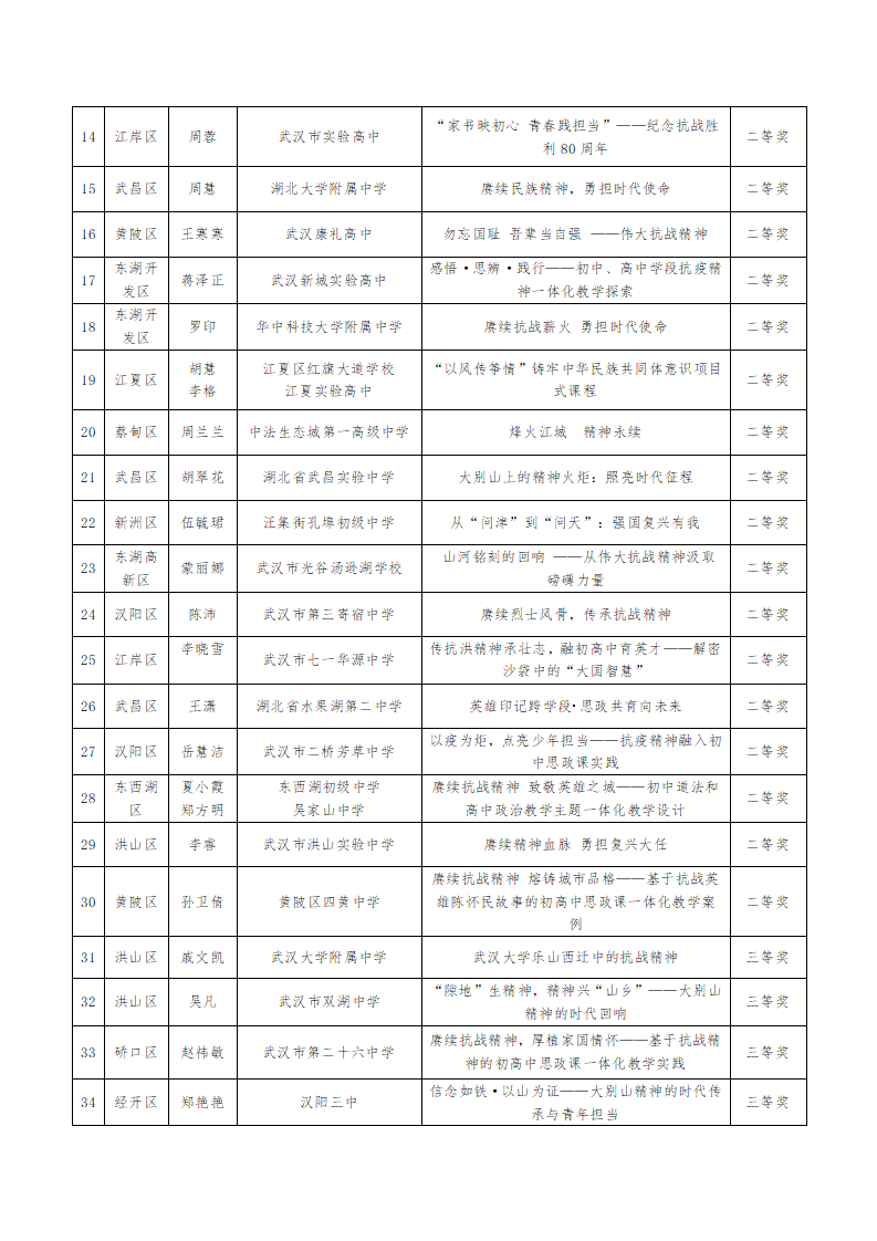 2025年武汉市大中小学思政课一体化建设中学优秀案例评审结果公示