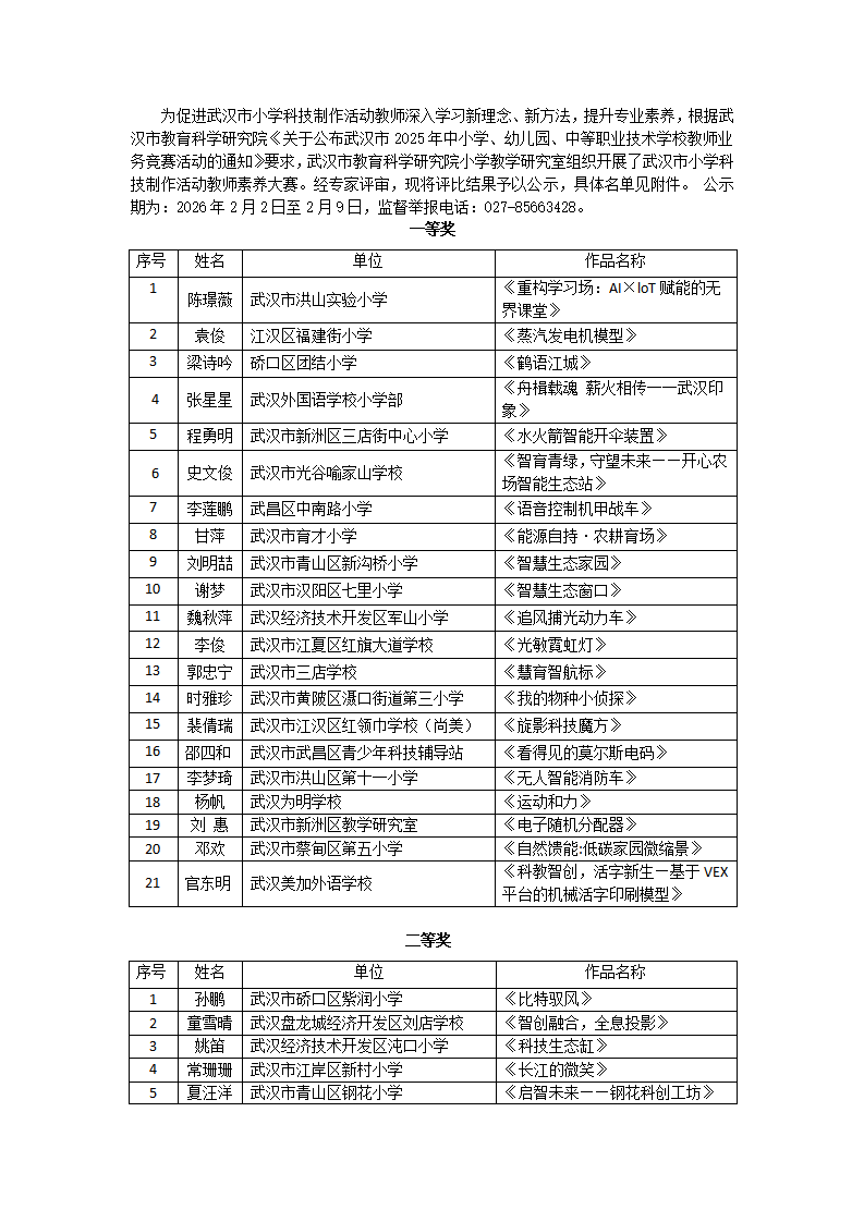 2025年小学科技制作活动教师素养大赛评比结果公示