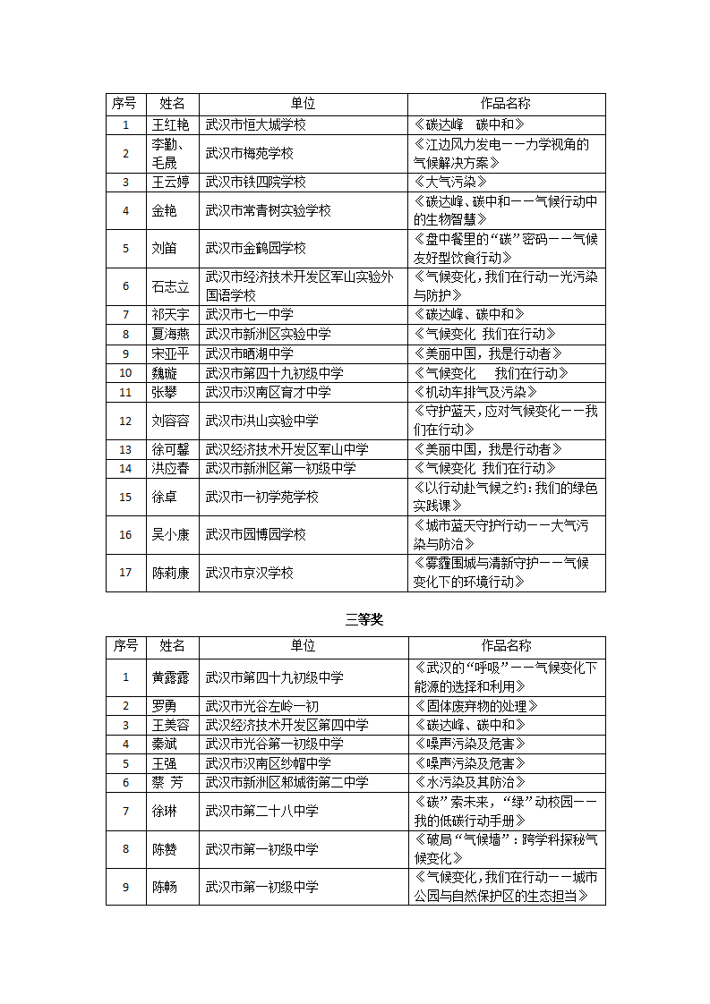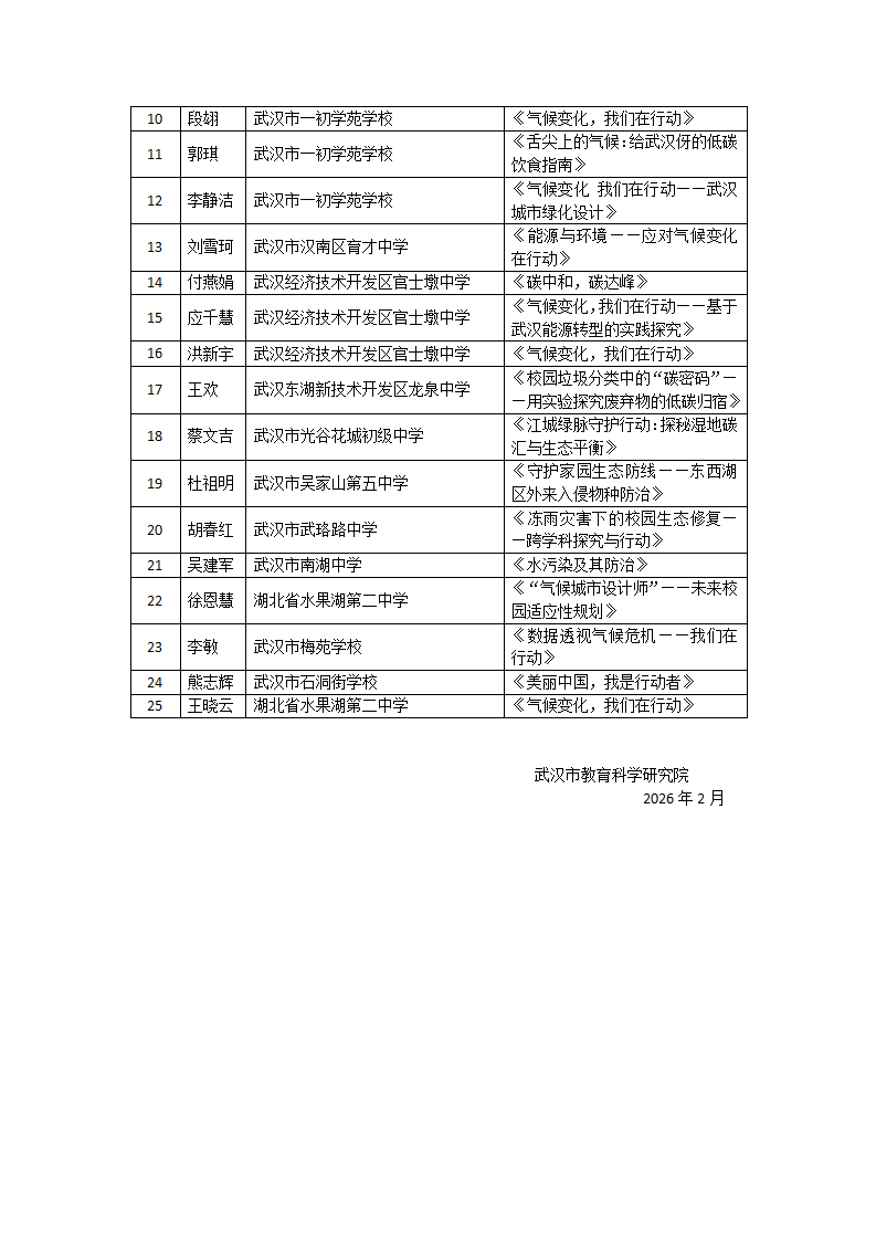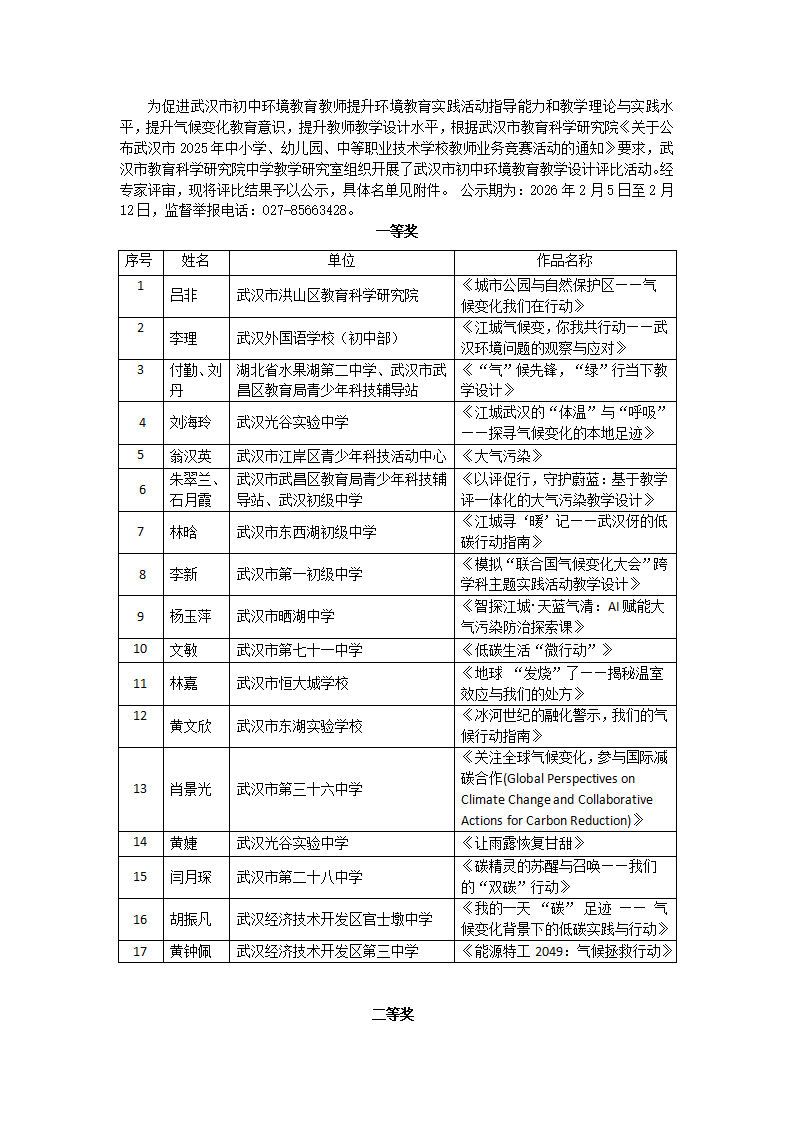 2025年“武汉好教研”初中环境教育教学设计评比结果公示