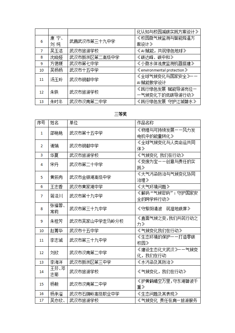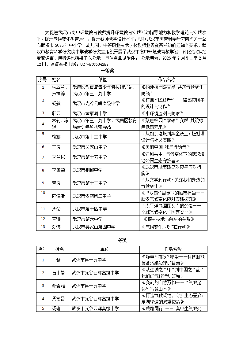 2025年“武汉好教研”高中环境教育教学设计评比结果公示